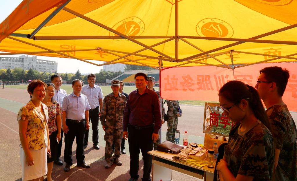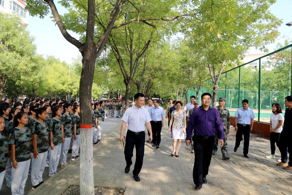 9月18日下午,党委书记闫纪建、院长赵继红、副院长郭涛在承训部队现场负责同志和党政办公室、党委宣传部、学生工作部(处)、保卫处(人武部)等相关部门负责人的陪同下来到新生军训现场,视察我校2017级新生军训情况。