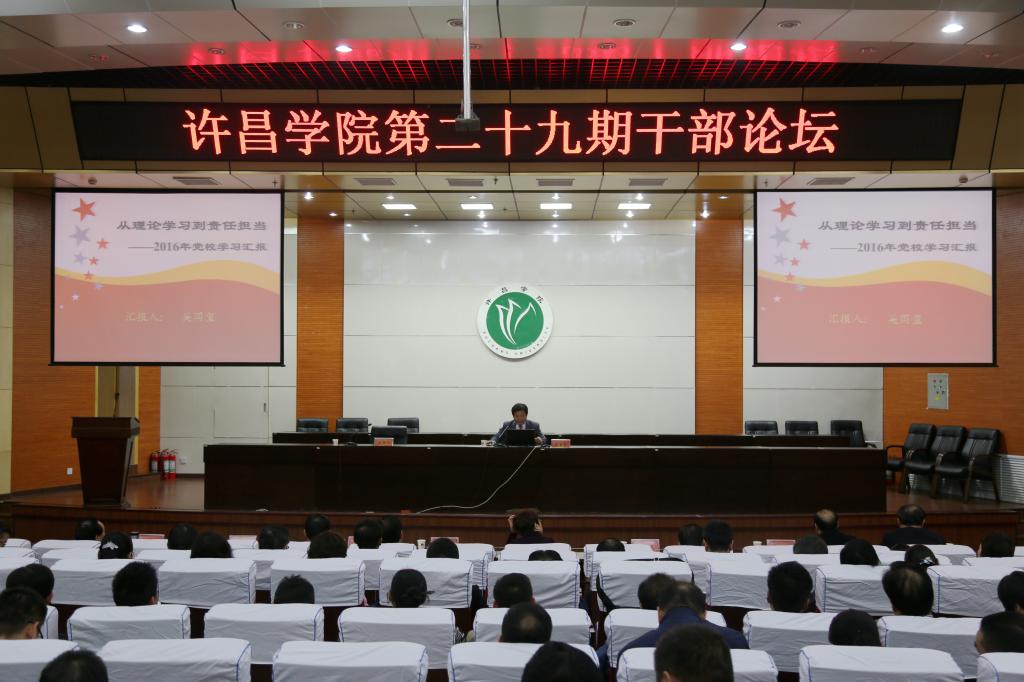 10月11日下午,我校在图书馆学术报告厅举行第二十九期“干部论坛”报告会。校领导赵继红、马超、赵正风、郑直、崔斌、黄怡俐、郭涛、杜志傲出席会议,全体中层领导干部、二级单位院长(主任)助理参加会议。报告会由党委组织部部长陈遂德同志主持。