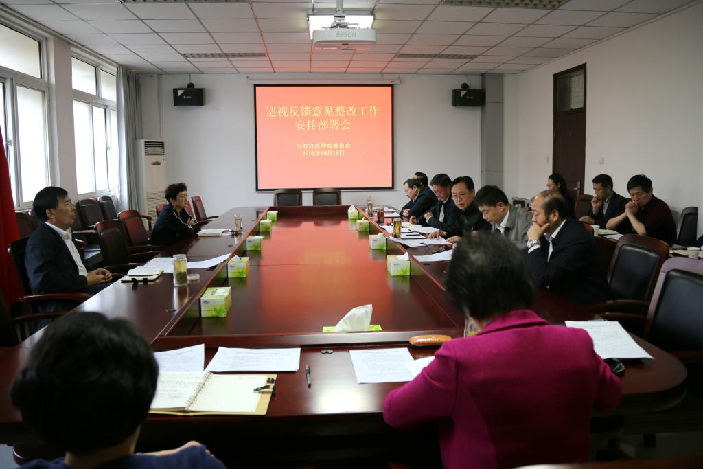 10月18日下午,学校党委在第四会议室召开党委(扩大)会议,安排部署专项巡视反馈意见整改落实工作。全体校领导出席会议,有关职能部门负责人列席了会议。