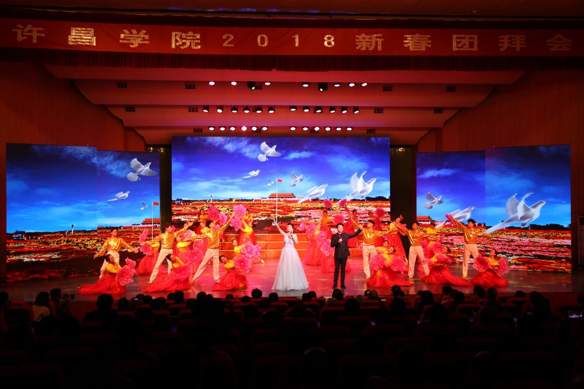 团拜会上,院长赵继红宣布了“许昌学院2017年度十大新闻事件”和“许昌学院2017年度十大入围新闻事件”。团拜会现场播放了党委宣传部、公共实验中心联合录制的“2017许昌学院月度汉字”视频,温情回顾了一年来许院发展铿锵坚定的足迹。团拜会还向全校师生送去了教学科研团队、留学生、创业团队、国外学子等不同群体的视频祝福。城乡规划与园林学院徐永新博士,法政学院学生、校学生会主席周康源分别代表师生发言,表达了他们对许昌学院师生的良好祝愿。随后,大家还观看了由党委宣传部、音乐舞蹈学院选送编排的精彩文艺节目。 (摄影: 宁智沛 袁旭阳)