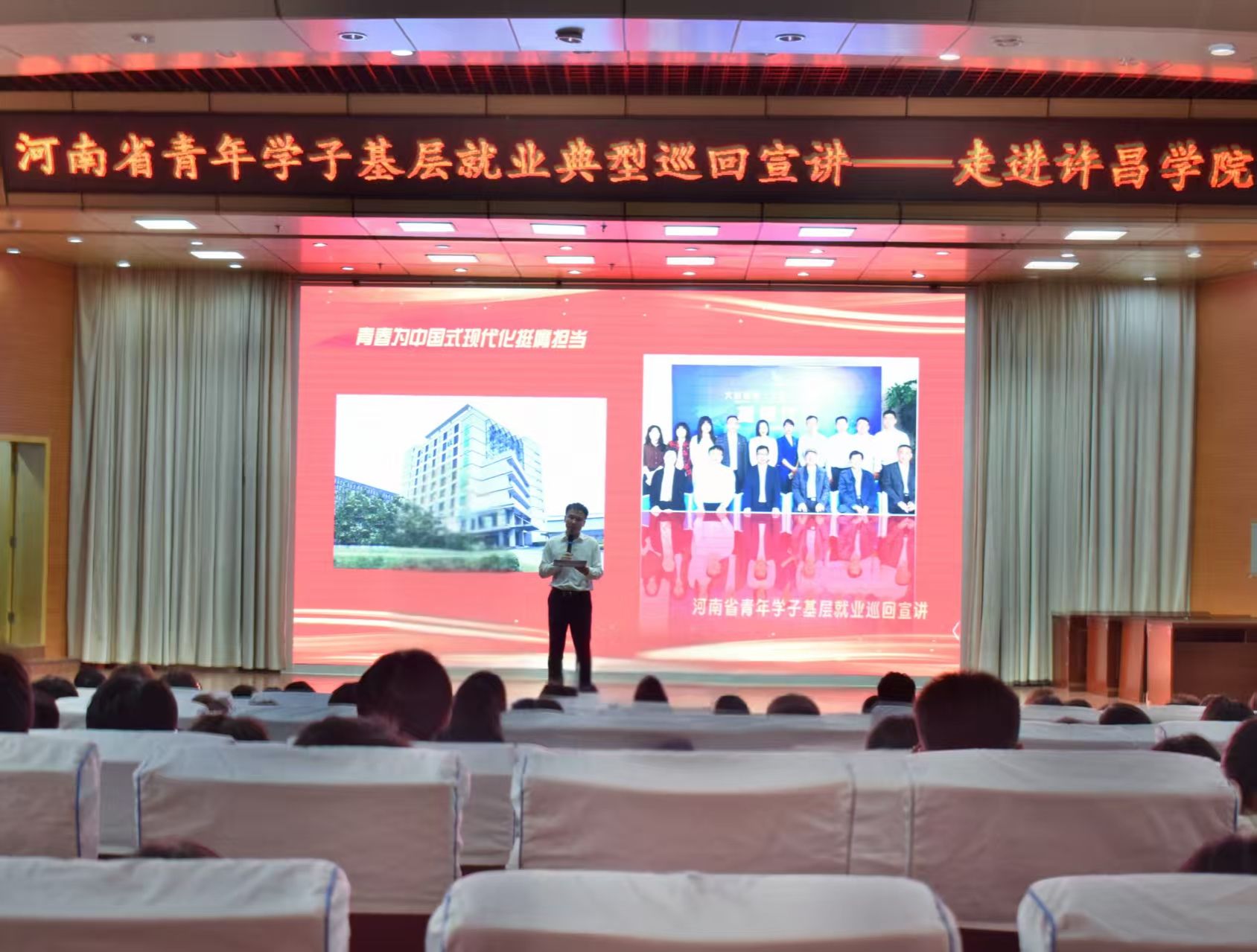 6月13日,由团省委、省教育厅主办的“青春为中国式现代化挺膺担当”——河南省青年学子基层就业典型巡回宣讲活动在我校图书馆报告厅举行。来自中原科技学院、许昌职业技术学院、许昌陶瓷职业学院和我校的300余名学生参加此次活动。