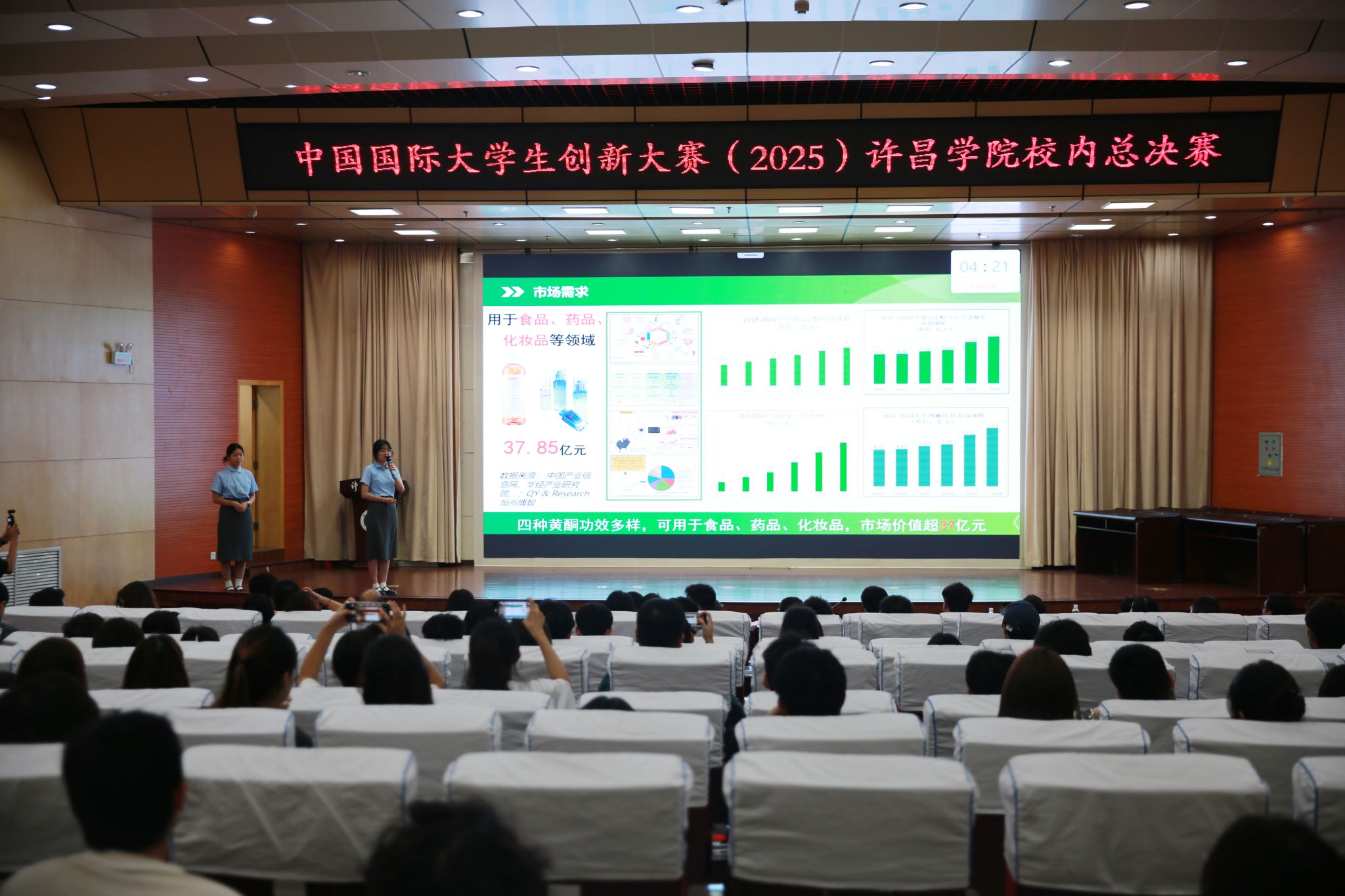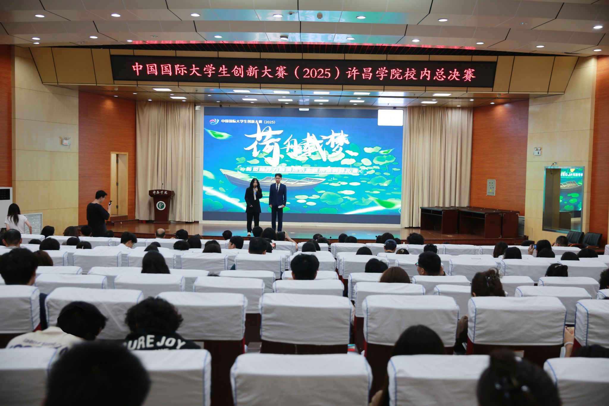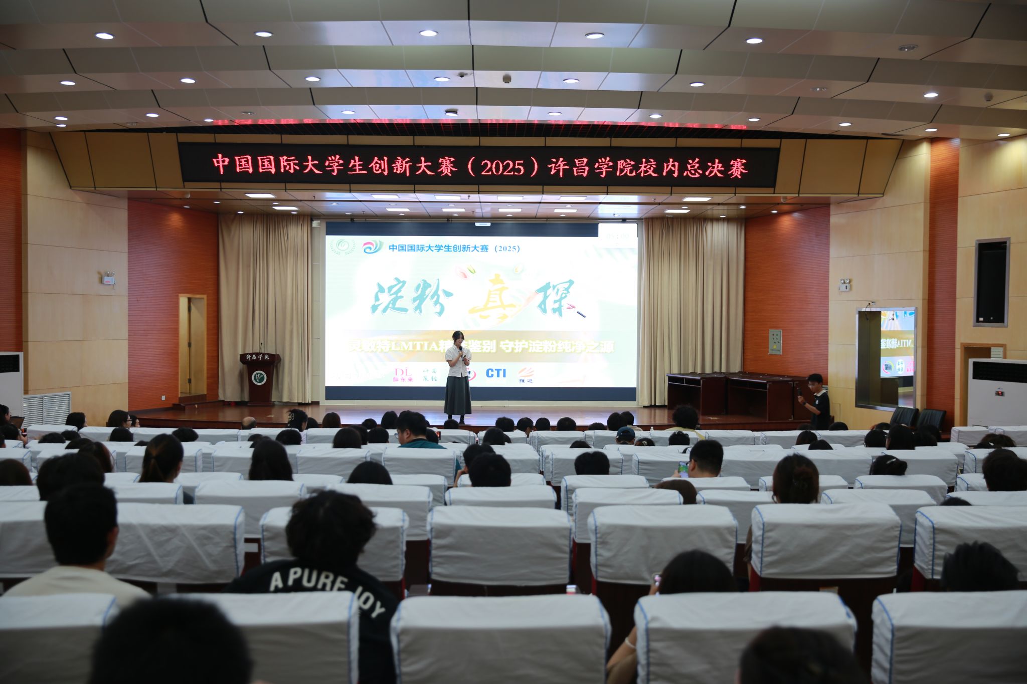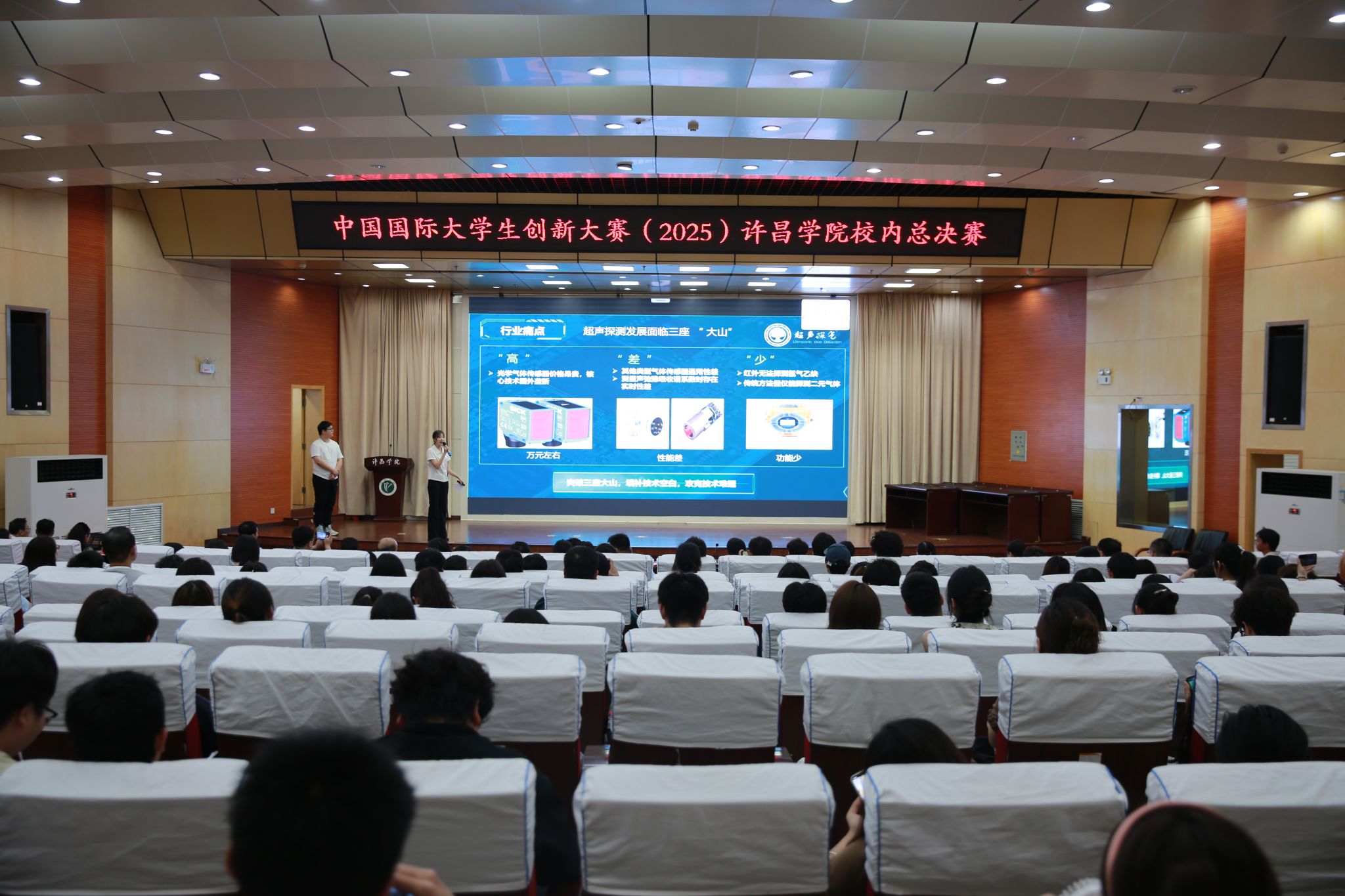 6月20日下午,中国国际大学生创新大赛(2025)许昌学院校赛总决赛在学术报告厅举行。校长郑直,副校长杜根远出席活动。大赛专班成员,各二级学院负责人、院系培育项目团队成员及项目指导老师和学生200余人观摩比赛。