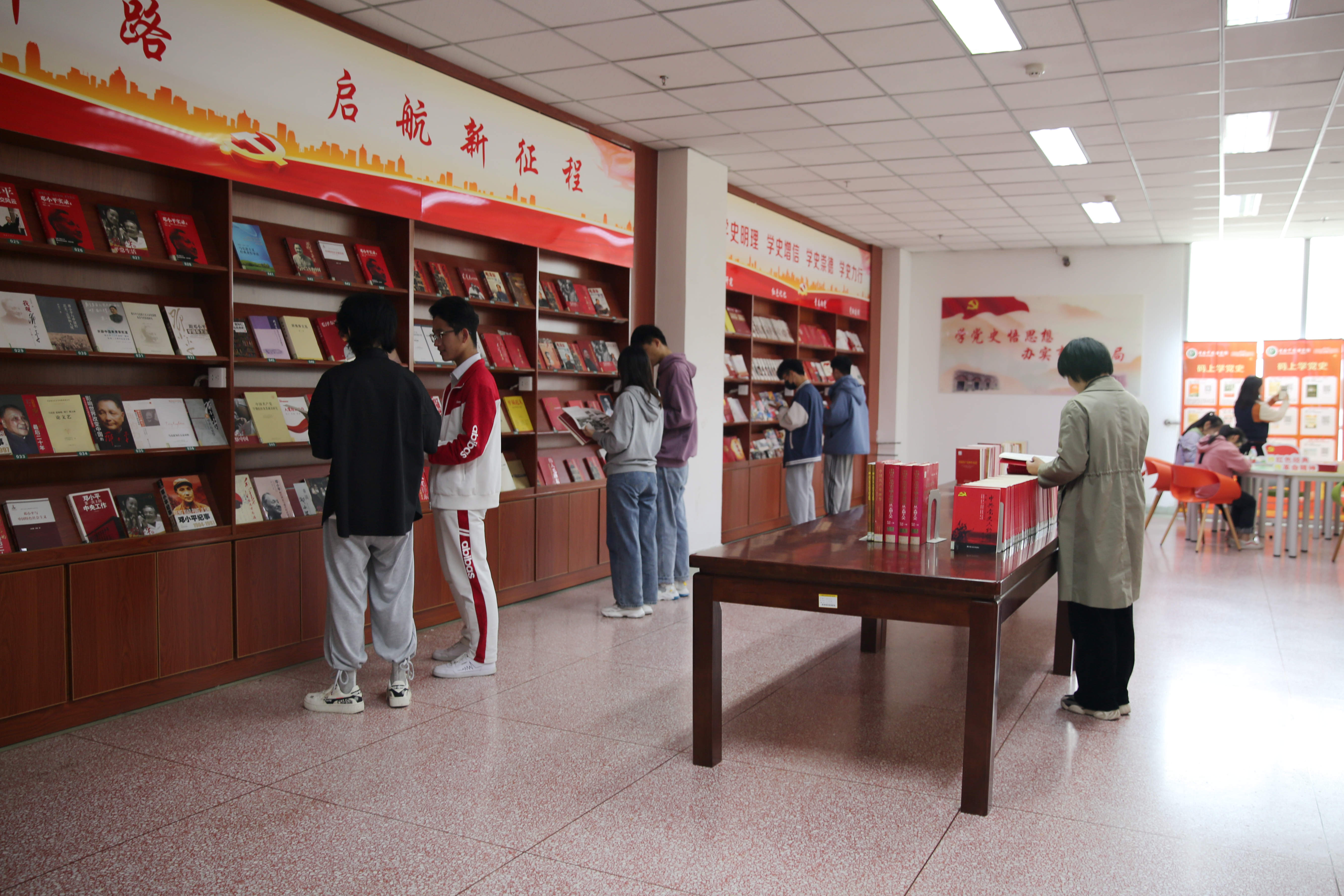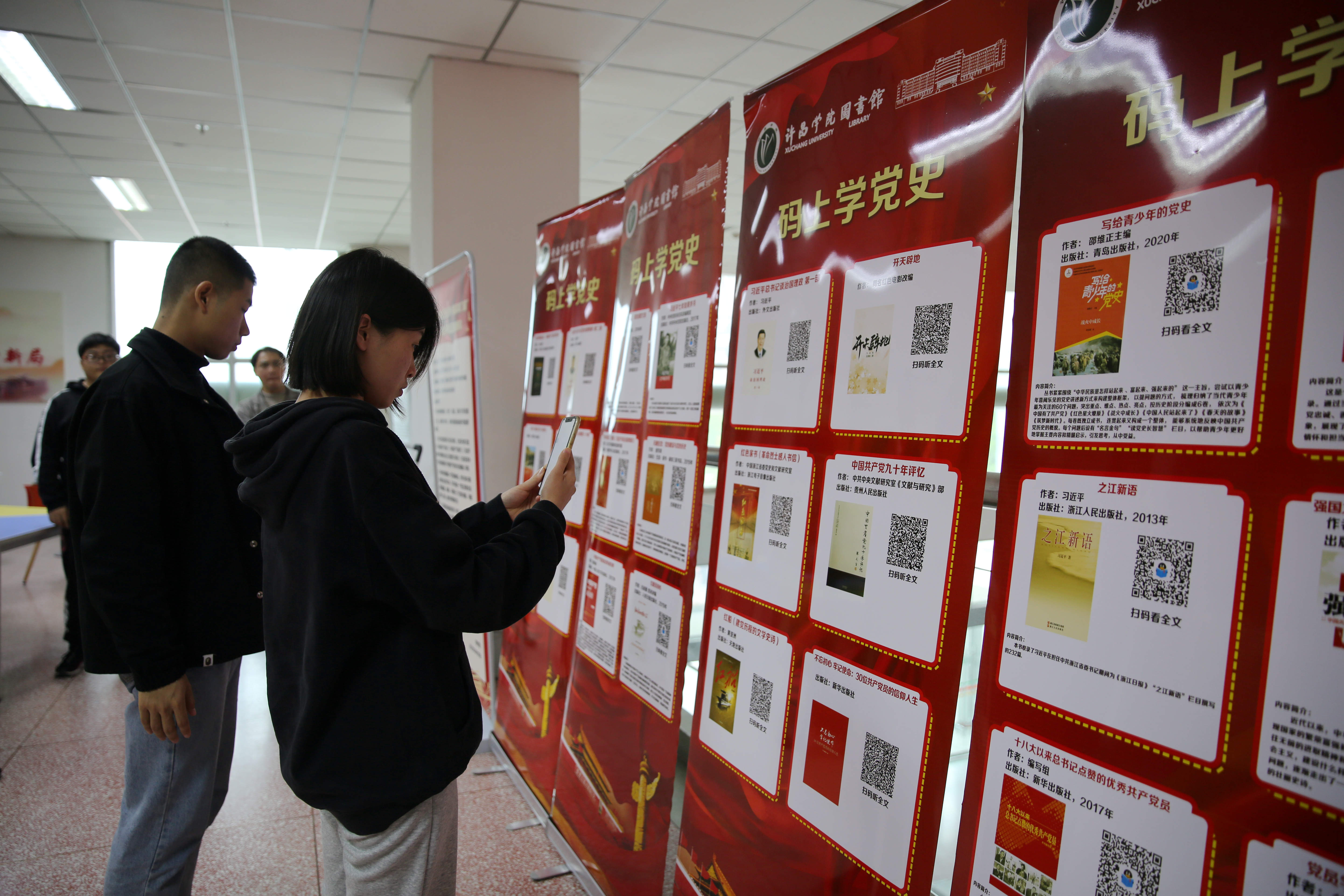 为方便师生查阅红色经典著作,图书馆还专门设置了“红色专题书柜”,分设“馆藏党史文献”“红色主题图书”“码上读党史”三个部分,数百本党史文献、理论研究、党建类图书在书架上摆放整齐,“码上读党史”则将阅读从线下延伸到了线上,令人耳目一新,为进馆阅读的师生营造出学习红色经典、追寻红色记忆、了解百年党史的浓厚学习氛围。