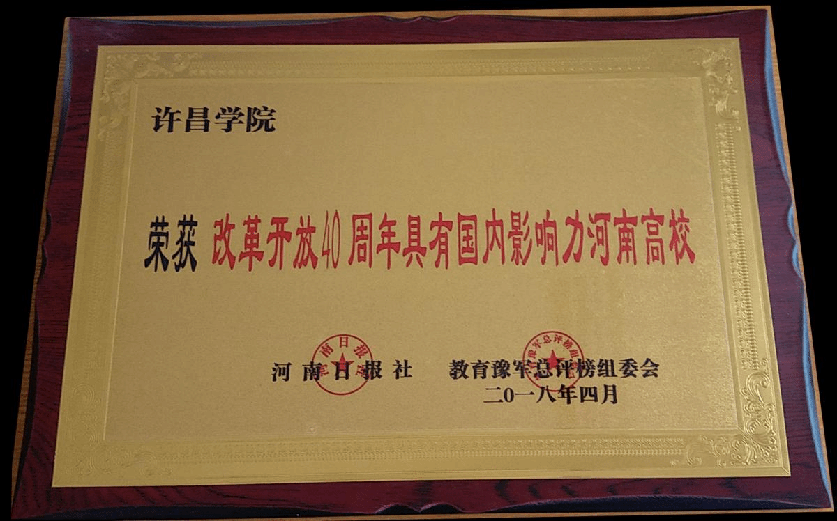 近日,由河南日报社主办的“第九届河南高等教育领军高校高峰论坛暨改革开放40周年教育豫军总评榜颁奖活动”在郑州河南报业大厦举行。论坛发布了改革开放40周年教育豫军总评榜,我校喜获“改革开放40周年具有国内影响力河南十大高校”和“2018年度河南最具就业竞争力品牌高校”两项殊荣。
