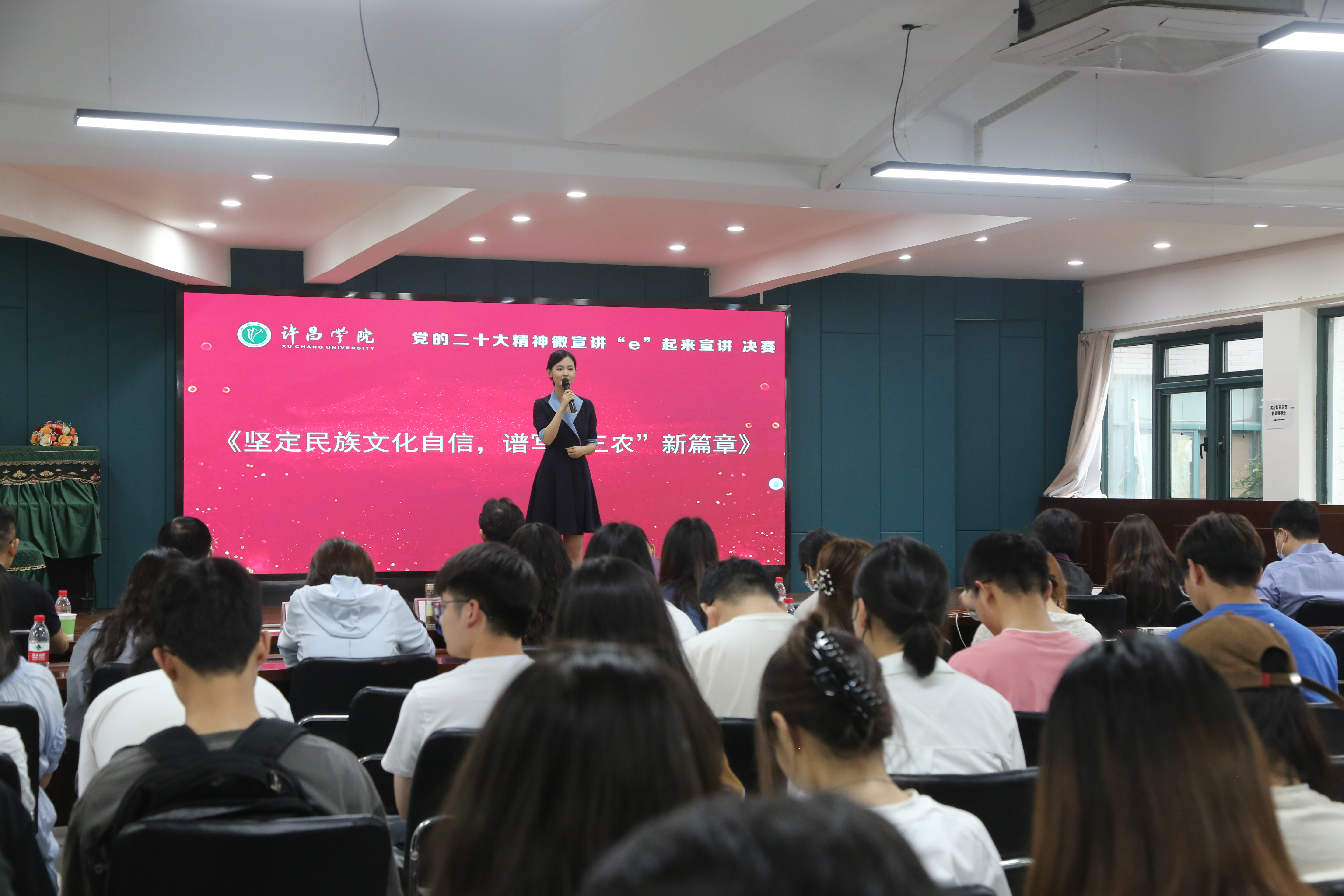 6月2日下午,由党委宣传部(新闻中心)主办、马克思主义学院承办的“e起来宣讲”党的二十大精神微宣讲大赛决赛在弘毅书院二楼报告厅举行。校党委副书记孙海出席活动。党委宣传部(新闻中心)、干部教育培训中心、学报编辑部、马克思主义学院、弘毅书院等相关单位负责人和师生代表现场观看比赛。