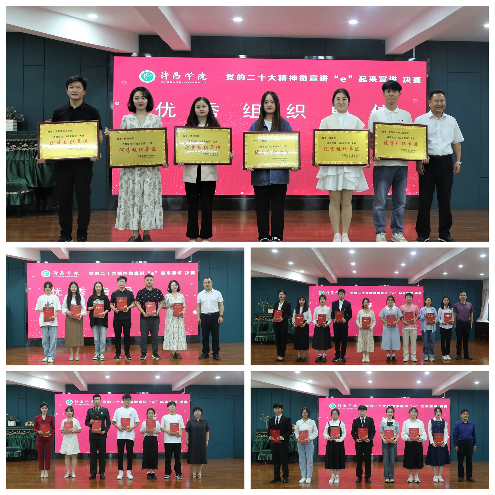 经过激烈角逐,比赛最终评出主题演讲类一等奖3人、二等奖5人、三等奖7人,短视频展播类一等奖3个、二等奖4个。并评出优秀指导教师6人,优秀组织单位6个,与会领导分别为获得获奖单位和选手颁发了获奖证书。
