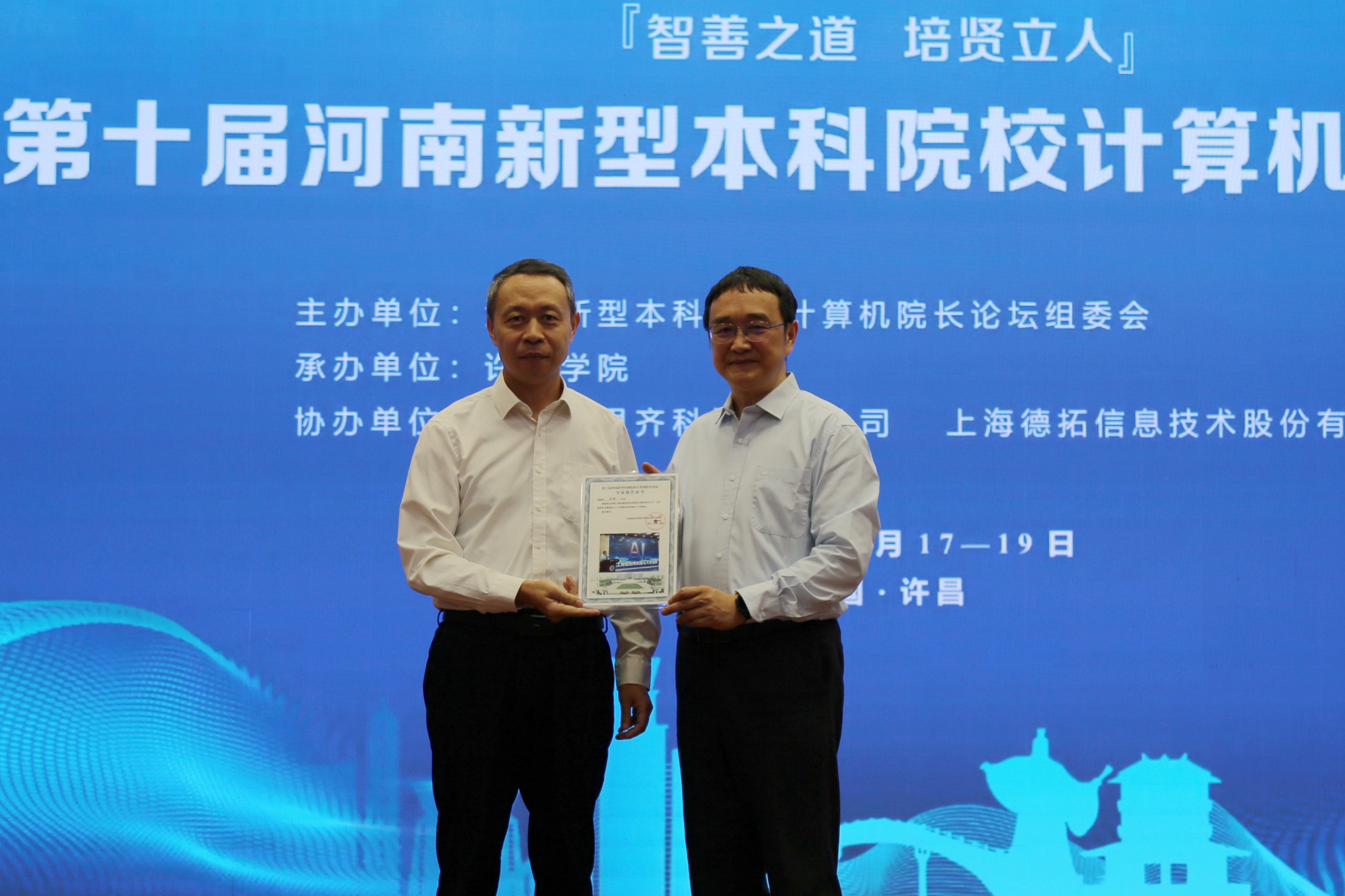 10月17日至19日,第十届河南新型本科院校计算机院长论坛在我校召开。河南省高等学校计算机教育研究会理事长、郑州工程技术学院校党委书记甘勇教授,北京邮电大学杨义先教授,日本工程院外籍院士、日本室兰工业大学副校长董冕雄教授,清华大学网络科学与网络空间研究院副院长张超教授,许昌学院校长郑直教授、副校长杜根远教授出席会议。本次会议主题为“智善之道 培贤立人”,旨在探讨人工智能赋能专业建设和教育模式的智能化转型,探索人工智能驱动下本科教育的新形态与新范式。我校信息工程学院副院长(主持工作)平源教授任本届论坛执行主席,开幕式由秘书长连卫民教授主持。