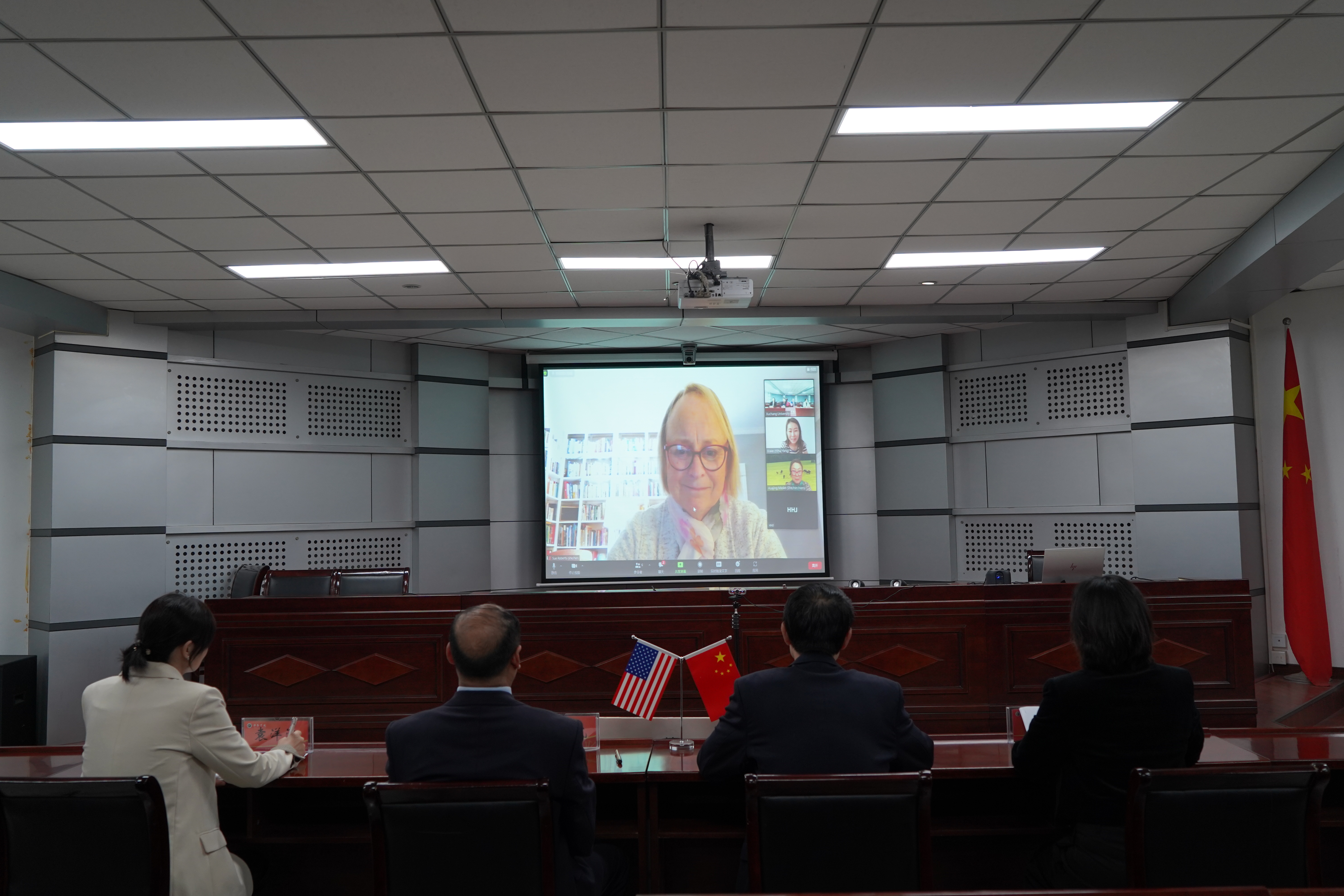 4月8日上午,我校在办公楼第三会议室与美国肯塔基大学(University of Kentuky)举行合作洽谈视频会议。肯塔基大学副校长Sue Roberts,Huajing Maske,我校副院长郑直、崔斌出席会议。会议由国际交流与合作处处长常小静主持。