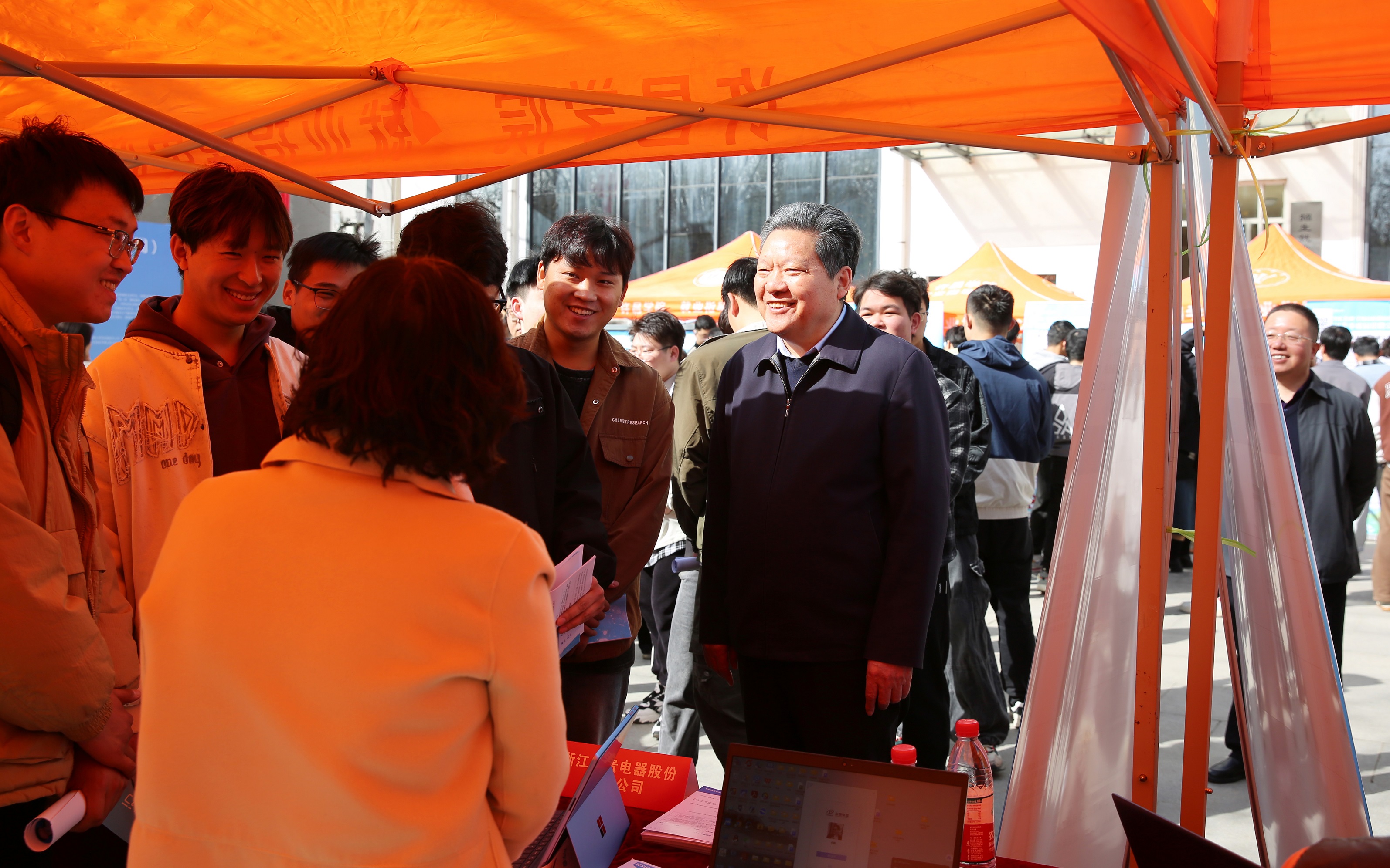 招聘会现场,副校长高金星、天台县人力资源和社会保障局副局长庞伟峰等与参会企业及毕业生亲切交流,了解企业招聘需求及毕业生求职情况。参会企业面对面向毕业生介绍岗位招聘、发展空间及福利待遇等情况。毕业生结合自身择业理想、能力素质选择意向企业,积极投递简历。