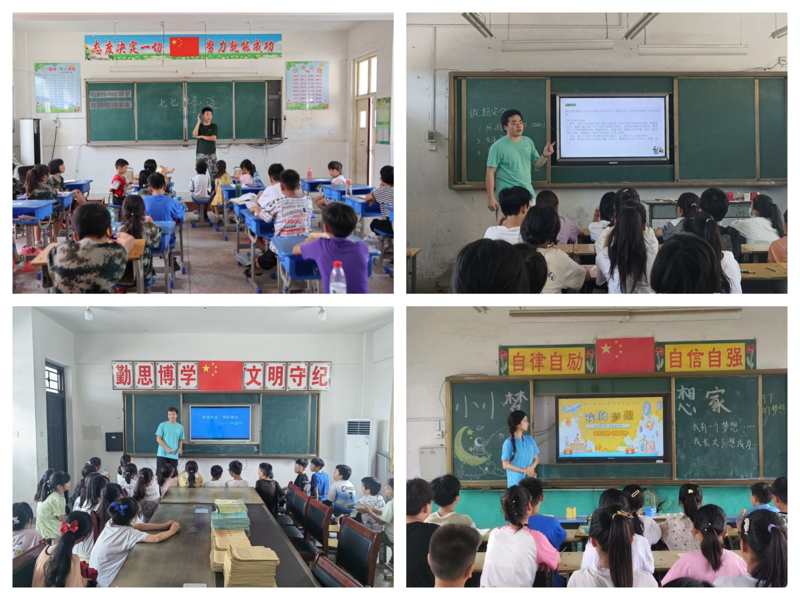 土木工程学院“阳光‘童’行”袁庄小学支教社会实践队,开设课业辅导、党史学习、趣味力学实验等课程,激发小朋友们传承革命薪火,启迪创造想象,快乐健康成长。在建安区艾庄乡中心小学,教育学院“星火传递”赴艾庄乡小学支教暑期实践队走进艾庄乡中心小学以及幼儿园积极开展“七一建党节”党史小课堂宣讲、“歌唱祖国歌唱党”“阳光大课间”等系列文化体育活动,宣传和弘扬爱党爱国的理想信念,促进其成长,推动乡村教育,助力乡村振兴。在建安区椹涧乡宁庄村,弘毅书院“赓续中国梦 关爱留守儿童”社会实践队积极开展留守儿童家访、课业辅导、体育锻炼、防溺水安全教育等活动,以实际行动关心关爱农村留守儿童成长。在鄢陵县陶城镇十室小学,法学院“情暖童心,携‘法’同行”暑期社会实践队面向小学生积极开展学业辅导、素质拓展、安全自护教育、法治宣传、心理健康团辅等活动,传播健康向上的生活理念、普及安全自护知识、培育提升法治素养。