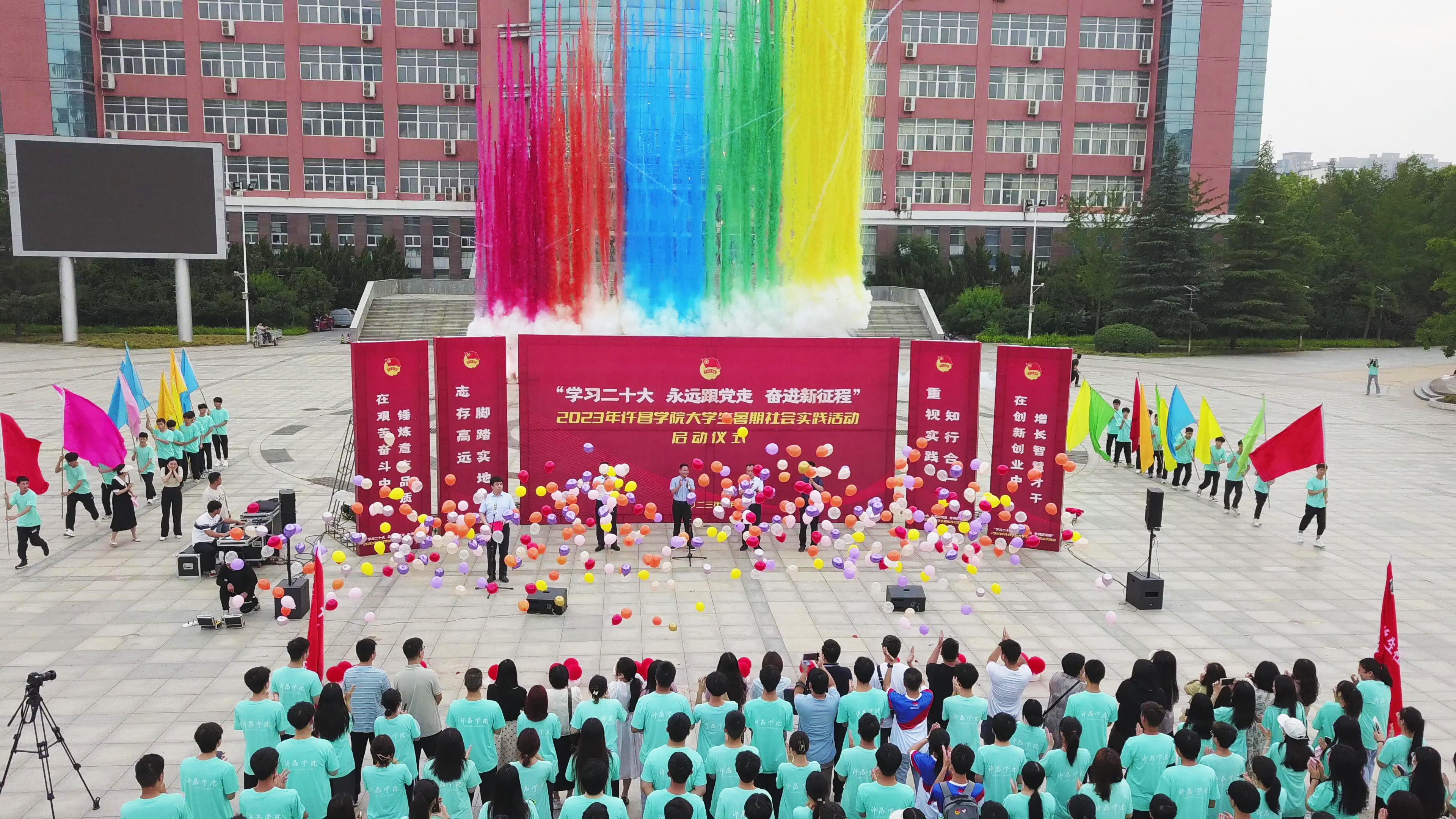 6月25日,我校“学习二十大 永远跟党走 奋进新征程”2023年大学生暑期社会实践活动启动仪式在弘毅广场举行。校党委副书记孙海出席仪式并宣布2023年大学生暑期社会实践活动启动。党委宣传部、党委学生工作部、教务处、团委等部门负责人,各二级学院(书院)团委负责人,实践团队指导教师和实践队员代表等400余人参加仪式。启动仪式由校团委书记史若延主持。