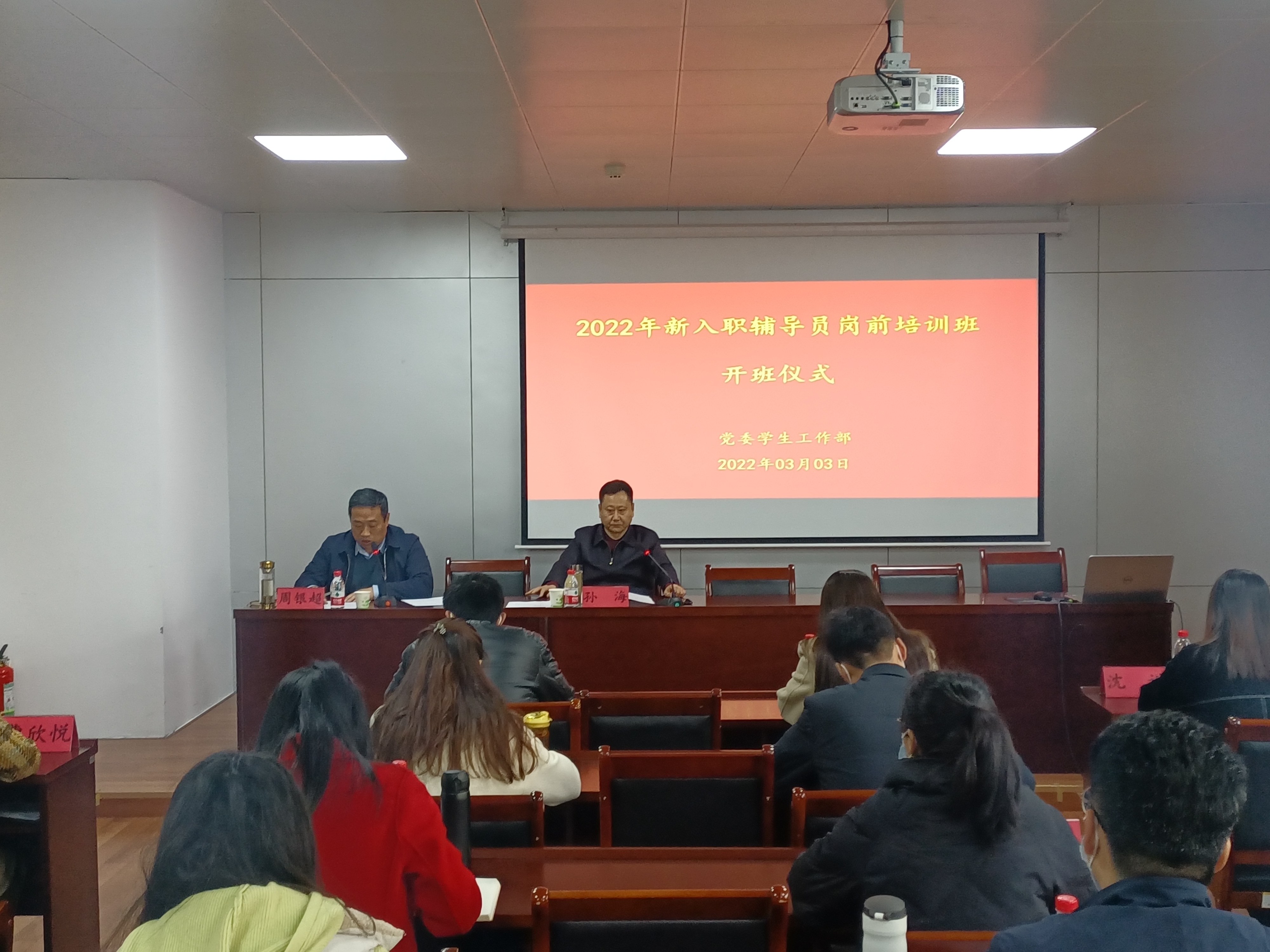 为加强我校辅导员队伍职业化专业化建设,提高新入职辅导员的综合素质能力,3月3日至4日,我校举办2022年新入职辅导员岗前培训班。校党委副书记孙海出席开班仪式并作首场报告,党委学生工作部部长周银超主持开班仪式并对本次培训进行了具体安排,全体新入职辅导员参加培训。