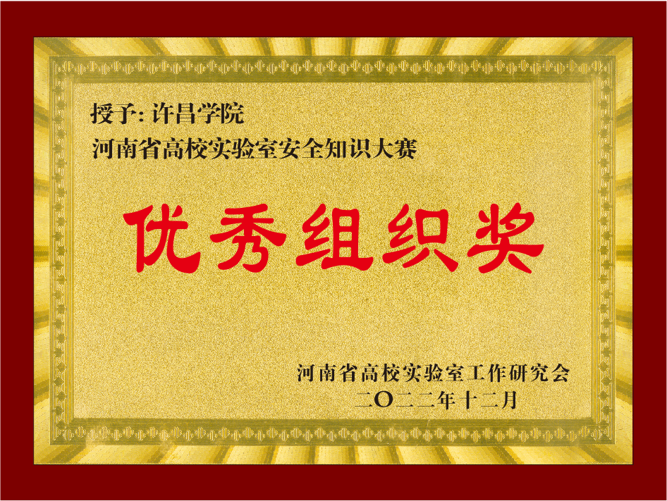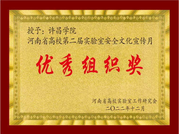 近日,河南省第二届高校实验室安全文化宣传月活动各项奖项公布,我校在活动中获“河南省高校实验室安全文化宣传月优秀组织奖”和“河南省高校实验室安全知识大赛优秀组织奖”,选拔推荐的李悦等10名学生在河南省高校实验室安全知识大赛(本科组决赛)中全部获奖。