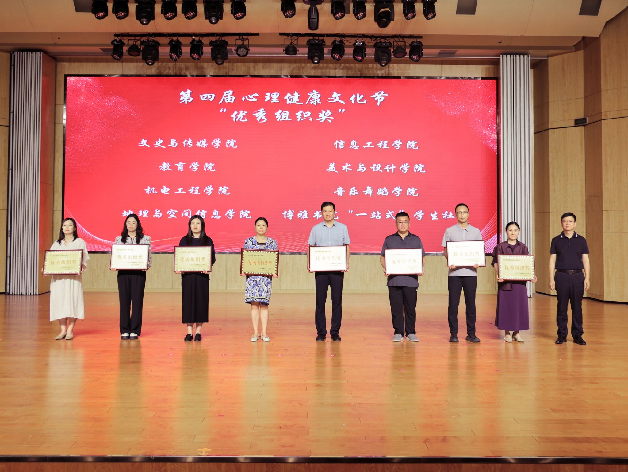 5月29日下午,我校在艺术楼音乐厅举行“育心赋能 乐享青春”第四届心理健康文化节闭幕式暨颁奖仪式。校党委副书记、工会主席梁予昉出席活动并讲话。党委宣传部、党委学生工作部(大学生心理健康教育与咨询中心)和教育学院等单位主要负责人,各学院(社区)党委副书记、心理专干与心理委员代表共300余人参加本次活动。