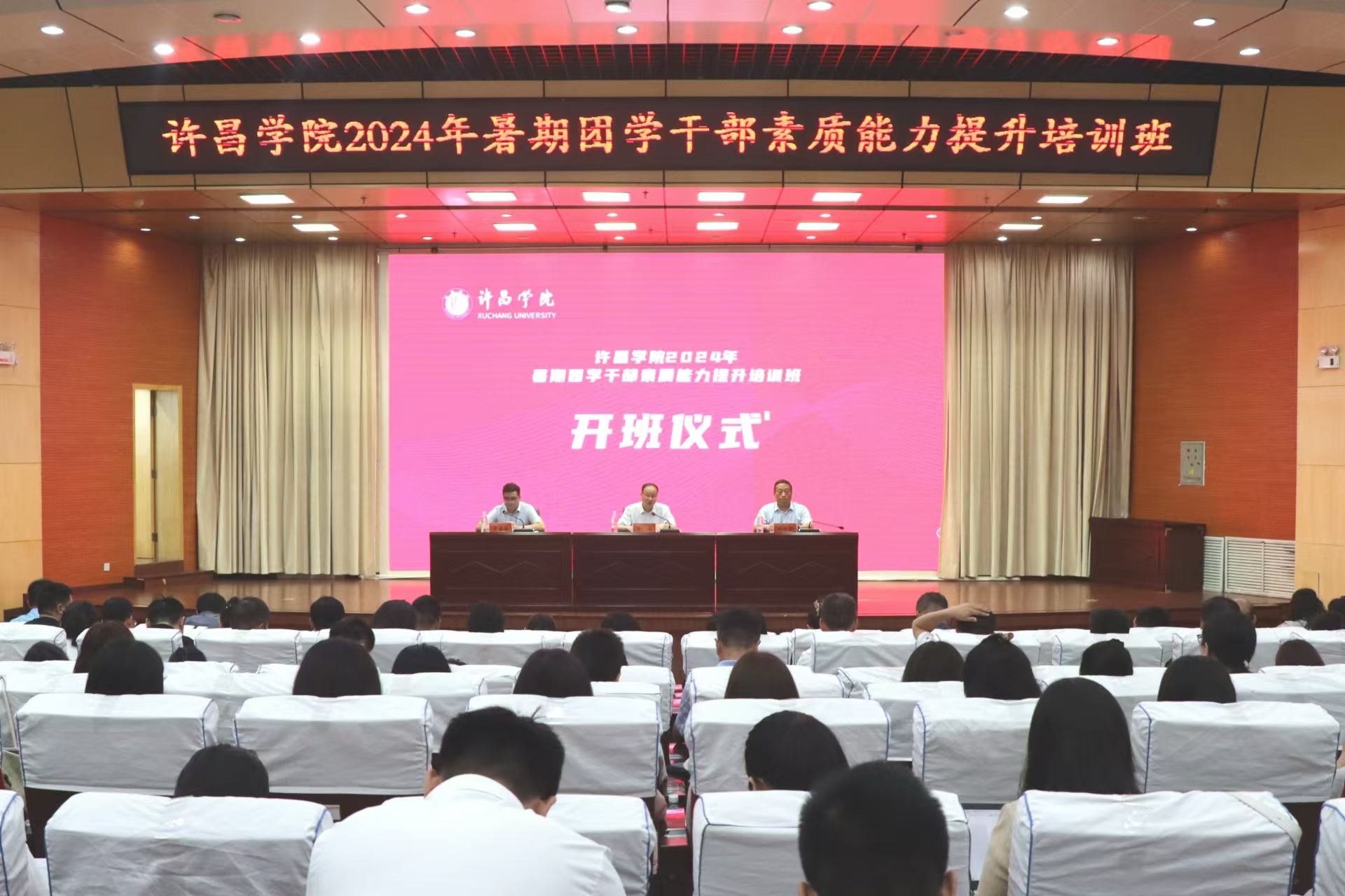 8月26至29日,我校在图书馆二楼学术报告厅举办2024年暑期团学干部素质能力提升培训班。副校长王俊出席开班仪式并讲话,各学院(社区)党委副书记、全体专兼职辅导员和学生工作部(处)、校团委全体人员共150余人参加本次培训。