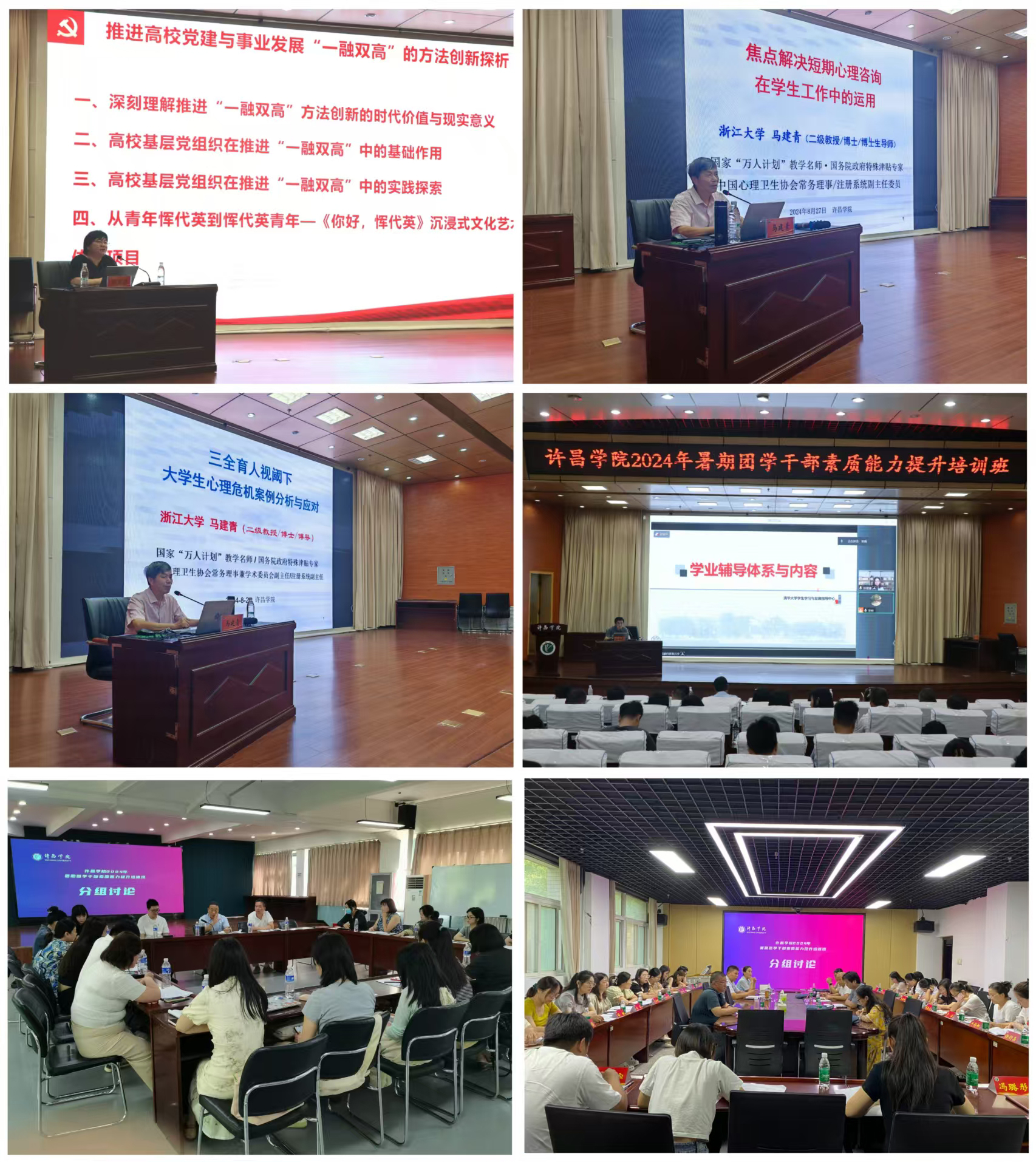 开班仪式上,党委学工部部长周银超就培训班的总体安排做了具体安排部署。培训期间,华中师范大学马克思主义学院党委副书记邵莉莉、清华大学学生学习与发展指导中心专职教师徐璠璠、浙江大学马克思主义学院二级教授马建青以及团省委宣传部和基组部相关同志分别以《推进高校党建与事业发展“一融双高”的方法创新探析》《学业辅导体系与内容》《焦点解决短期心理咨询技术在学生工作中的运用》《三全育人视阈下大学生心理危机案例分析与应对》《辅导员压力应对与情绪管理》《加强规范化建设,为推动新时代新征程高校共青团高质量发展提供有效组织保障》和《新媒体时代舆论引导的青年之声》等为题,围绕学生思想政治教育、学生日常事务管理与学风建设、辅导员队伍建设与能力提升、大学生心理健康教育与危机干预、群团建设与校园文化等内容作专题辅导报告。全体参训人员围绕培训内容,开展了专题座谈和分组交流。
