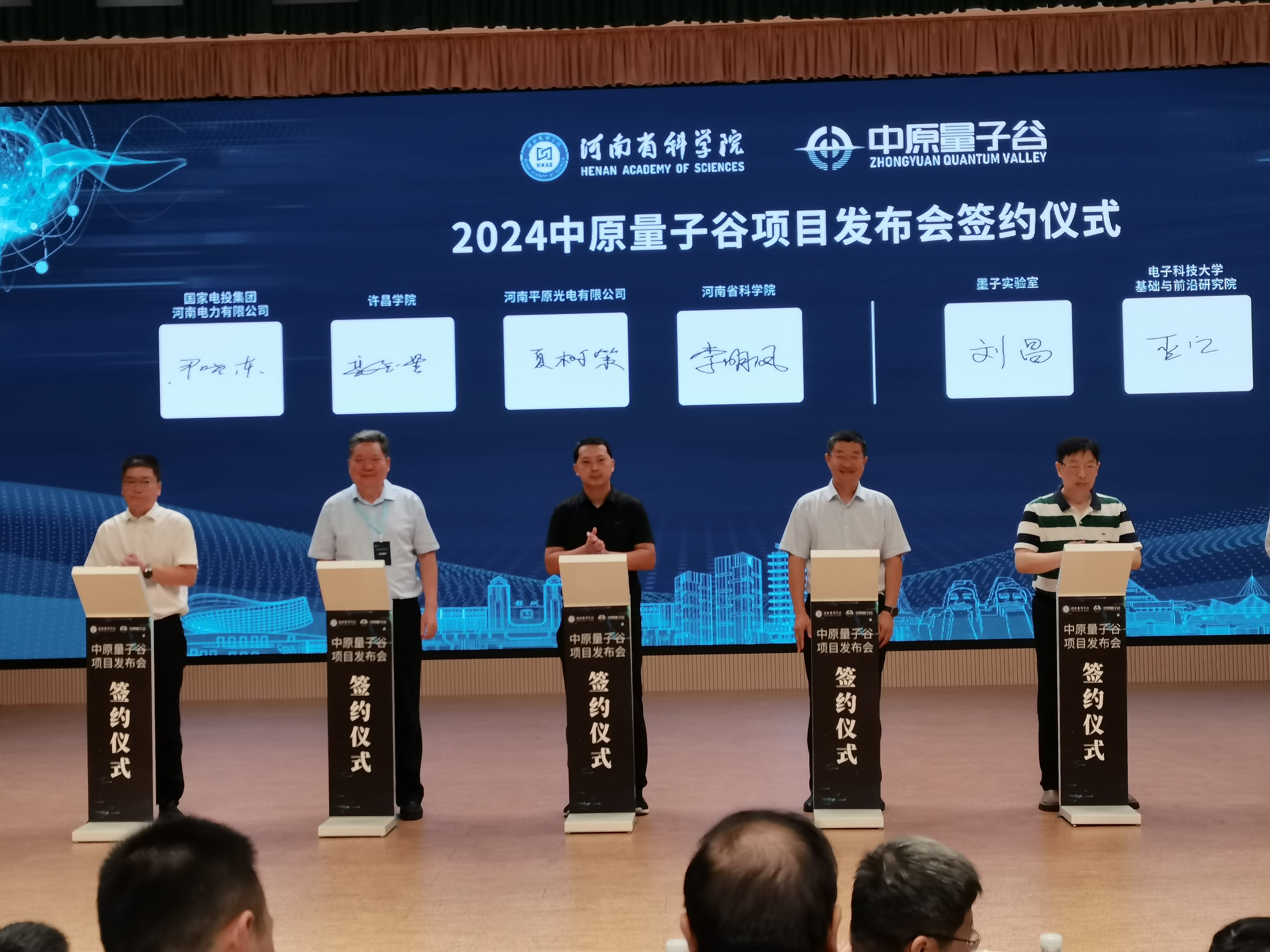 应河南省科学院邀请,8月30日,副校长高金星一行参加中原量子谷项目发布会,并与河南省科学院进行电子签约。发布会由河南省科学院和中原量子谷主办,河南省人民政府副秘书长赵学东、中国工程院院士王立军、河南省科学院院长徐红星出席会议。我校校地合作办公室、化工与材料学院、信息工程学院、电气工程学院相关负责人参加了项目发布会。