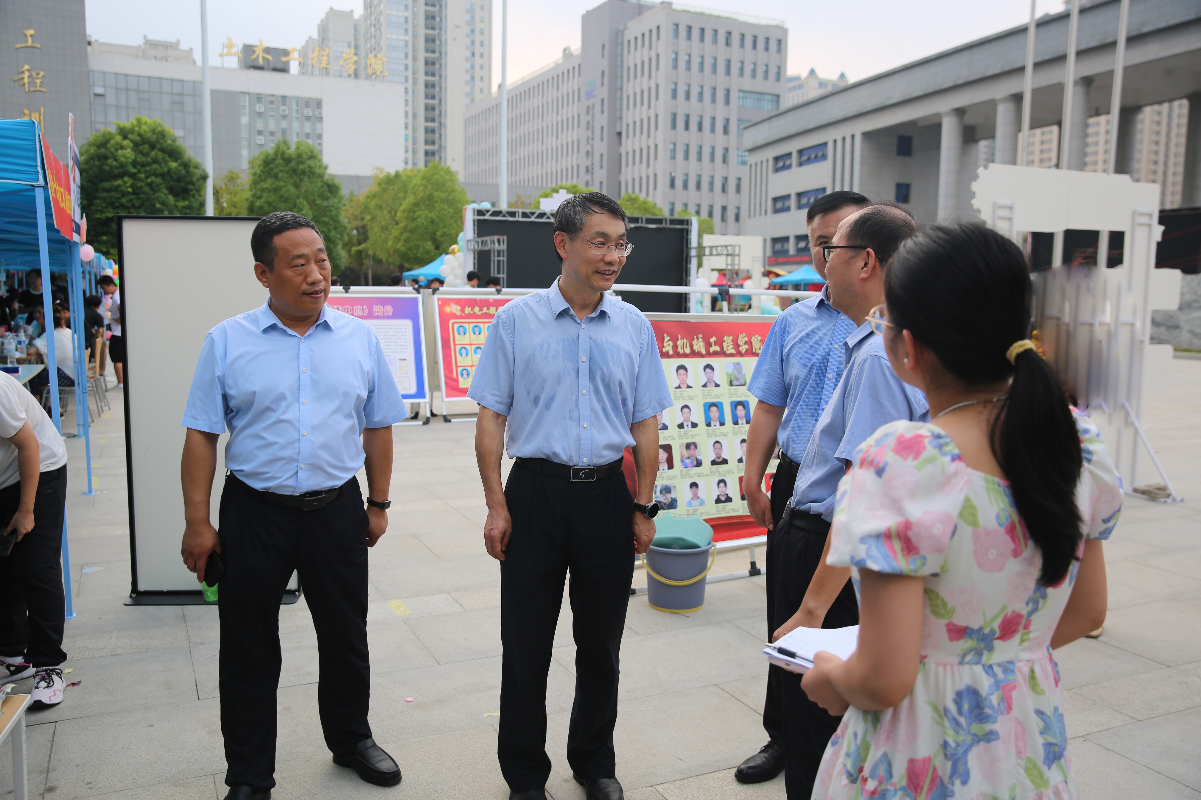 9月7日,我校2024级本科新生报到第一天,校党委书记郭涛,校长郑直,党委副书记、工会主席梁予昉,副校长潘春彩、杜根远,纪委书记申占伟,副校长王俊在相关部门负责人陪同下,先后深入八一路和兴华路校区的迎新现场,了解报到情况,与新生和家长亲切交流,看望慰问迎新工作人员和志愿者,指导迎新工作。
