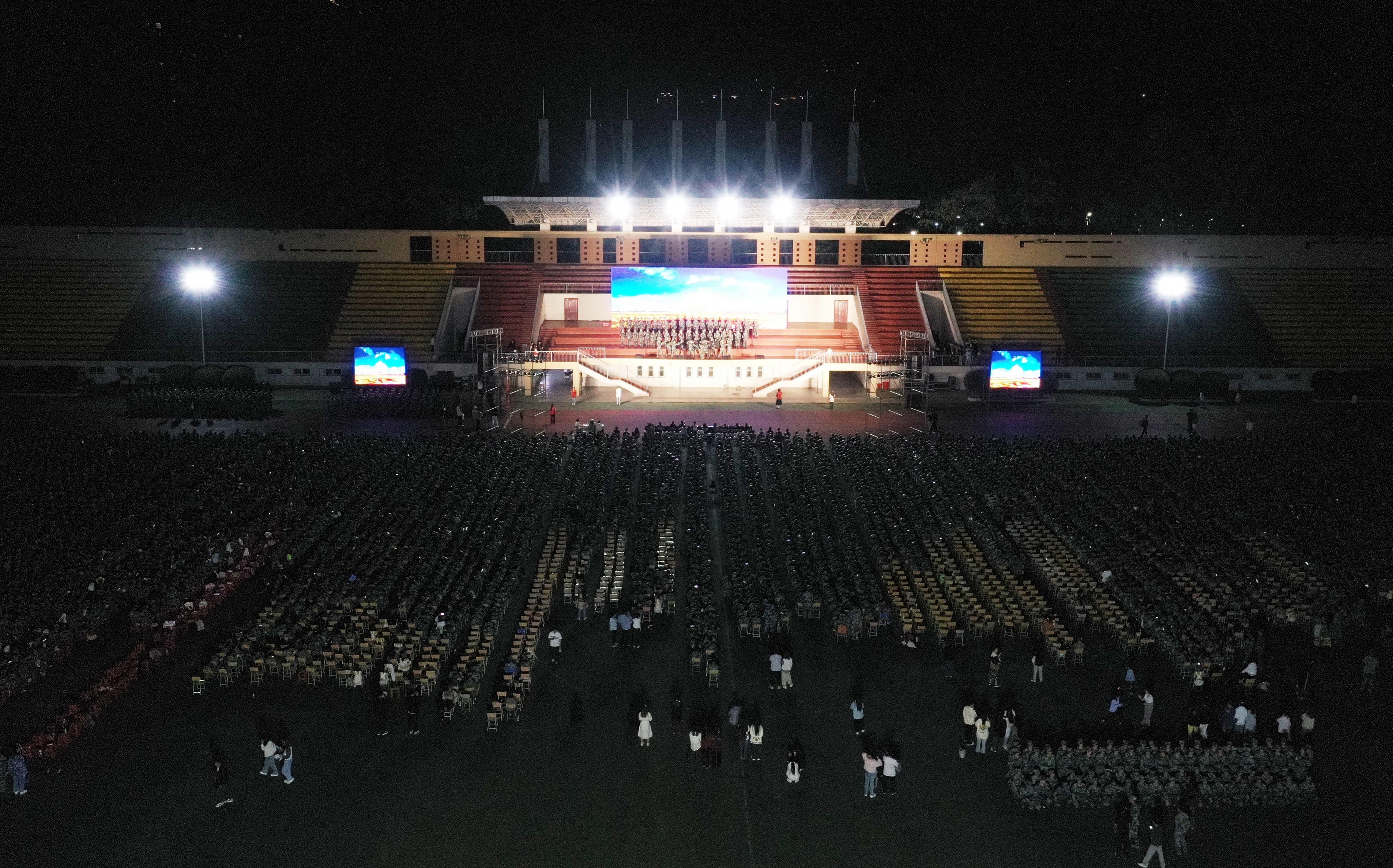 根据军训工作安排,9月22日晚,我校“军歌飞扬,强国有我”2024级新生军训军歌合唱比赛在羽飞田径场举行。副校长王俊出席比赛。来自各二级学院的共19支队伍参加比赛。