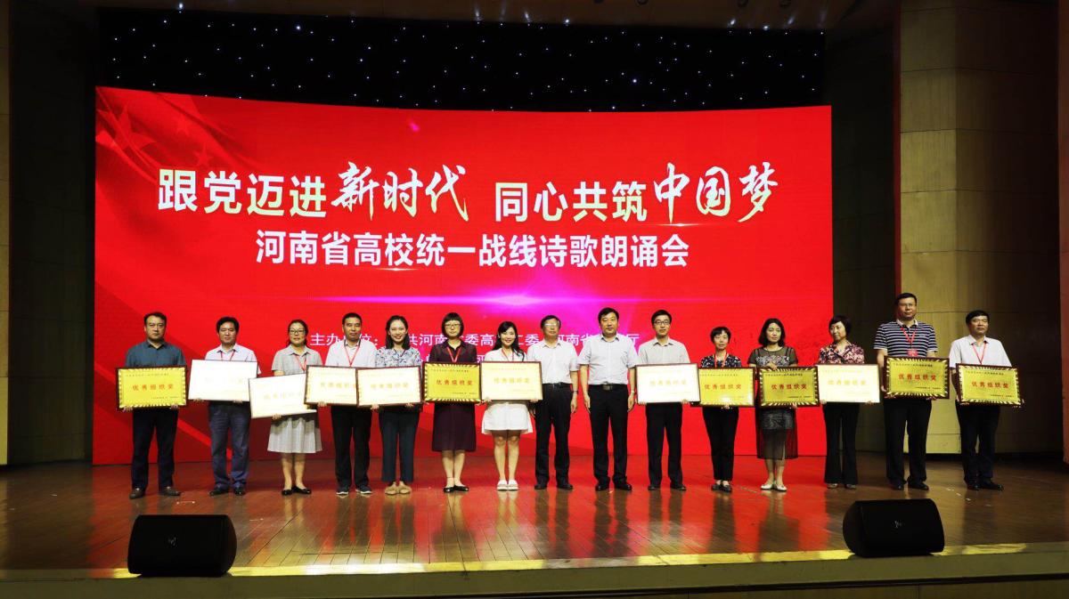 6月1日至2日,全省高校统一战线诗歌朗诵会决赛在河南师范大学举行。我校喜获一等奖和优秀组织奖。
