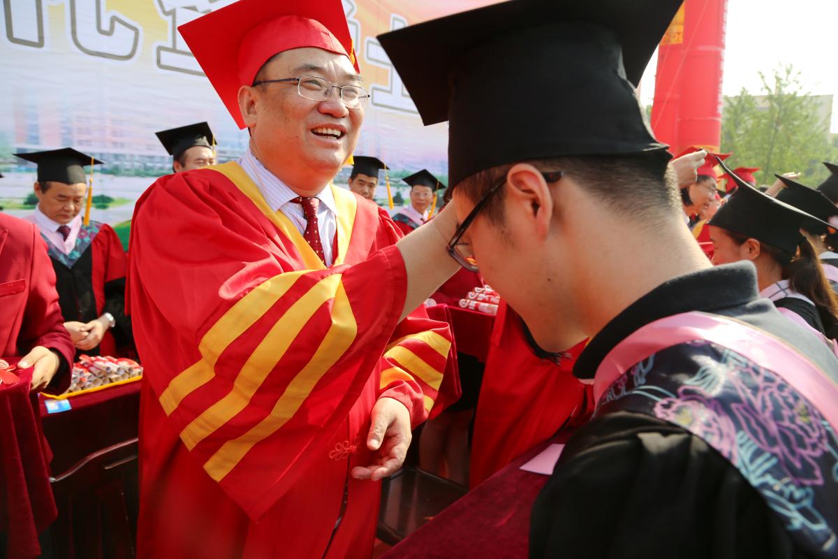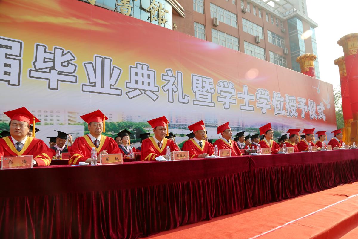 6 月7日上午,我校在弘毅广场举行2018届毕业典礼暨学位授予仪式。5048名2018届本科毕业生被授予学士学位。赵娜等188名同学荣获省级优秀毕业生称号,訾业等 628 名同学被评为校级优秀毕业生,另有章可欣等 325 名考取硕士研究生的学生受到表彰。党委书记闫纪建、院长赵继红等学校领导和学校学士学位评定委员会委员,为毕业生授予学位证书,并为他们拨穗正冠。