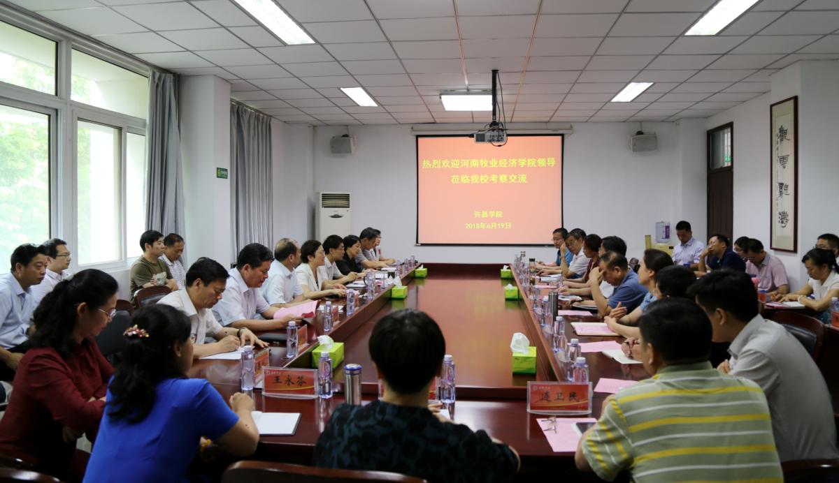 6月19日,河南牧业经济学院校长罗士喜、副校长张卫宪、陈艳、杨志清等一行来我校考察交流工作。党委书记闫纪建、院长赵继红会见了来访客人,双方进行了座谈交流。校领导郑直、崔斌、黄怡俐、高金星及学校相关部门、二级学院负责人参加了座谈交流。