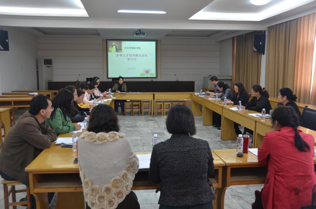 10月22日下午,医学院举办护理人才培养模式研讨会。许昌市中心医院护理部主任董理丽、许昌市中医院护理部主任席菊英、许昌市人民医院护理部主任赖玉等专家应邀参加研讨会,就人才培养模式改革方面的问题进行研讨。医学院院长艾旭光,副院长张彩霞、护理教研室教师等参加会议。
