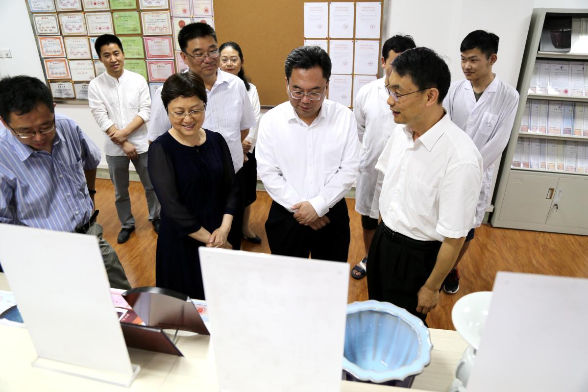 在河南省微纳米能量储存与转换材料重点实验室,郑直副院长介绍了实验室目前在学科方向凝练、科研合作成果转化、经济效益等情况。马刚询问了实验室的学术团队建设以及科研平台建设等方面的发展,对实验室协助企业开展金属材料研究、钧瓷釉色、薄膜太阳能电池等项目的研究给予了高度肯定。