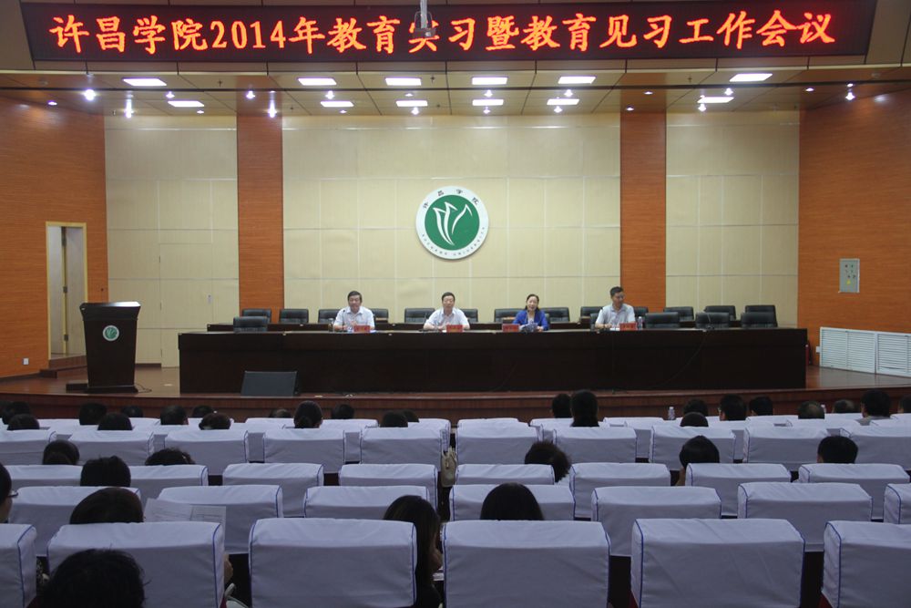9月11日上午,我校与许昌市教育局在学术报告厅联合召开了2014年教育实习、教育见习工作会议。许昌市各市、县、区教体局副局长、教育股股长,优秀实习学校校长和许昌市直、许昌县、魏都区、东城区、经济技术开发区各实习基地负责人160余人参加会议。许昌学院副院长黄怡俐、许昌市教育局副局长代廷安等出席会议。会议由我校教务处处长张元敏教授主持。