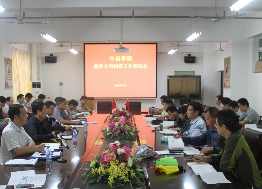 9月12日,我校精神文明创建工作推进会在电气(机电)工程学院三楼会议室召开,进一步加速推进我校全国文明单位创建工作,安排、落实我校承担的许昌市创建全国文明城市工作任务。党委副书记马超出席会议,全校各单位具体负责文明创建工作的班子成员、各院部团总支书记参加会议。会议由党委宣传部副部长、校文明办副主任崔越主持。