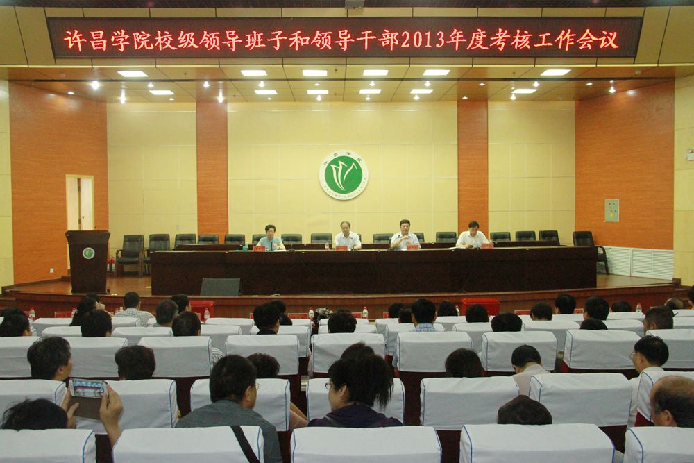 考核会议之前,学校党委通过学校办公系统公布了《许昌学院教育实践活动查摆问题、开展批评情况综合报告》、《许昌学院校级领导班子2013年工作总结》、《许昌学院校级领导班子成员述职述廉述学报告》等材料。