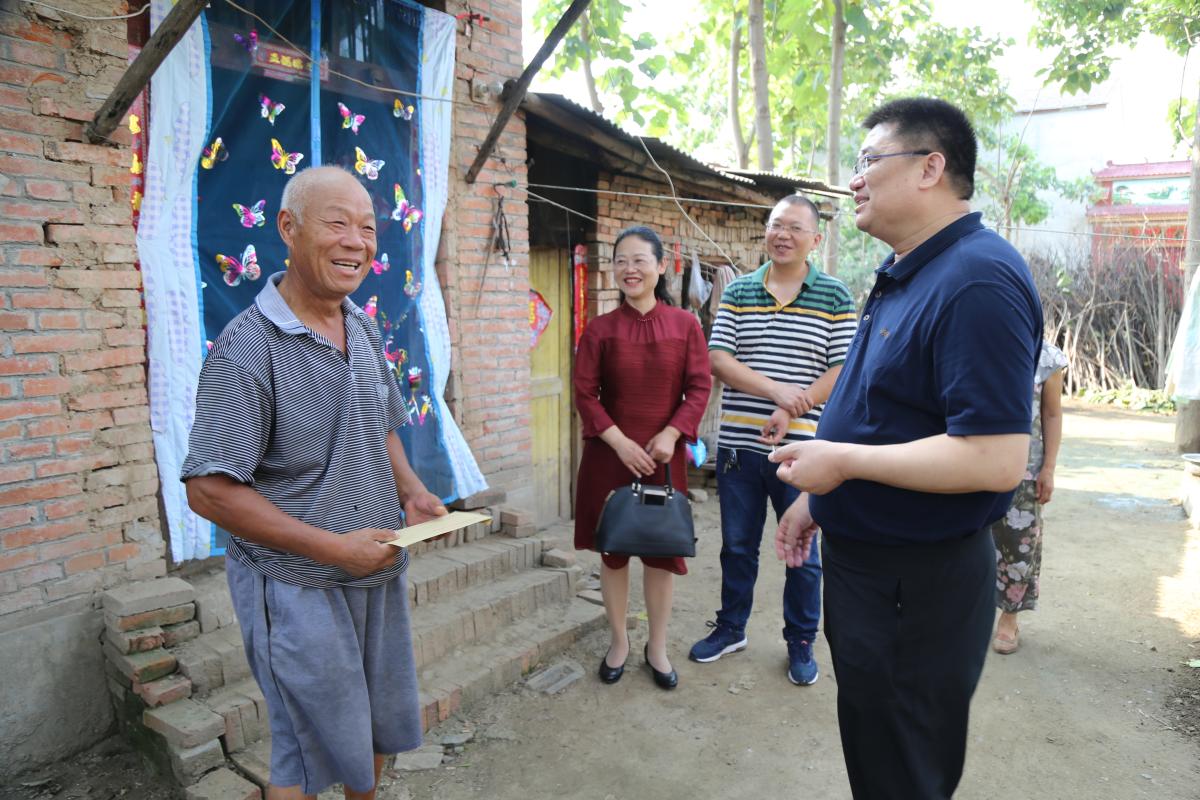 时值“七一”前夕,6月28日,我校党委书记闫纪建来到扶贫联系点鄢陵县只乐镇郭刘村调研,并看望困难党员。党政办主任潘春彩、离退休工作处长刘国臣陪同调研。