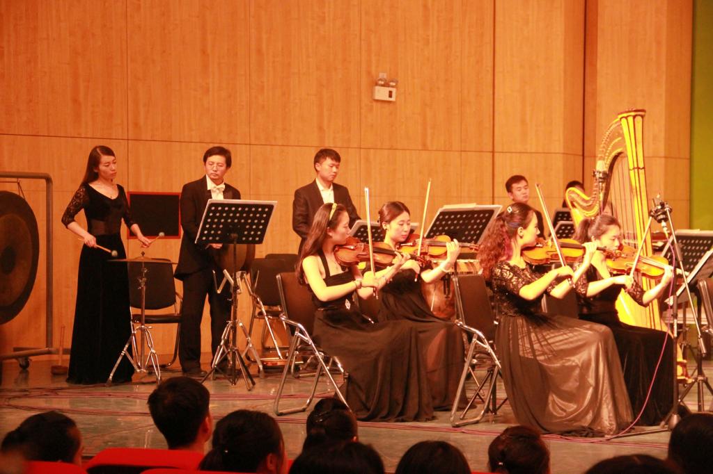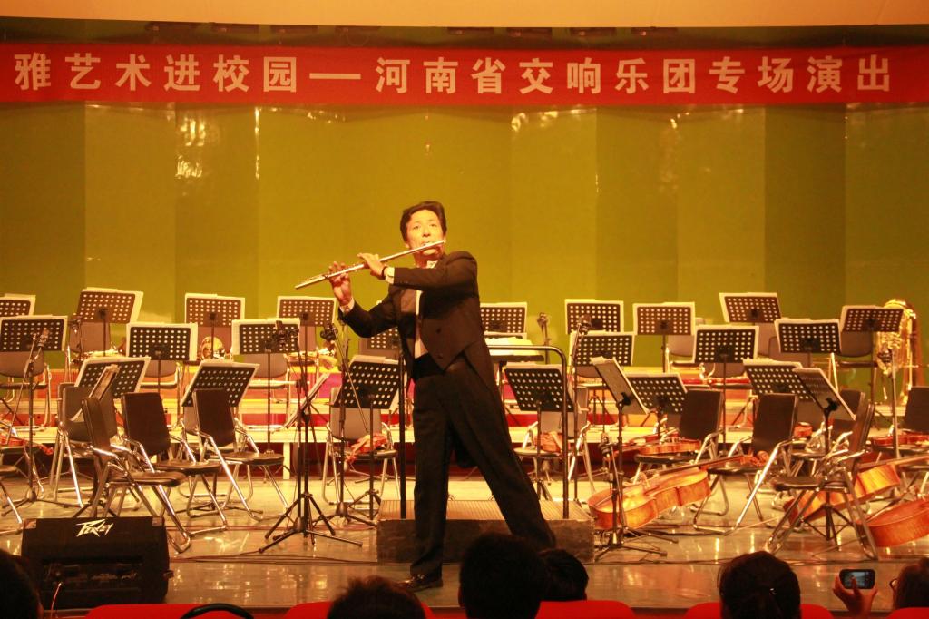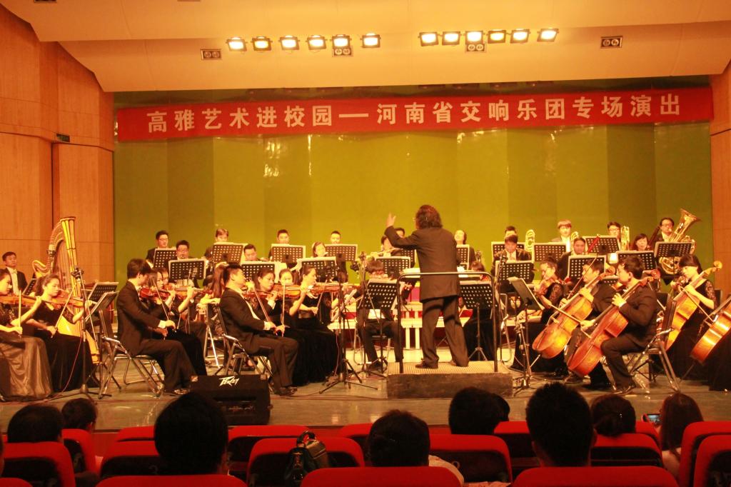 6月27日晚,作为我省教育厅、文化厅等单位组织的“高雅艺术进校园”系列活动之一,河南省交响乐团前来我校音乐厅演出。省交响乐团的艺术家们为我校师生演绎了10多首中外经典音乐作品。党委副书记马超,副院长郑直、崔斌等学校领导和师生代表近400人一起欣赏了这场高雅的视听盛宴。