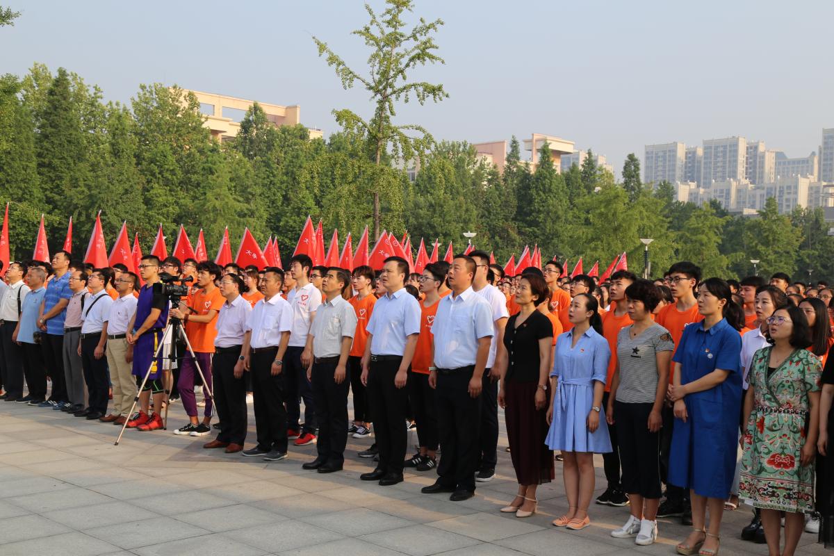 7月1日上午,在中国共产党成立97周年之际,“国旗下的讲话”暨2018年“学习奋进新时代·青春勇踏新征程”大学生暑期社会实践活动启动仪式在弘毅广场举行。校党委副书记孙海,我校省派驻艾庄回族乡袁庄村第一书记陈浩勇及2018暑期社会实践活动领导小组全体成员出席仪式,“西部计划”学生代表、100支实践团队的指导教师和团员代表近1000人参加了仪式。启动仪式由团委书记谢依楠主持。