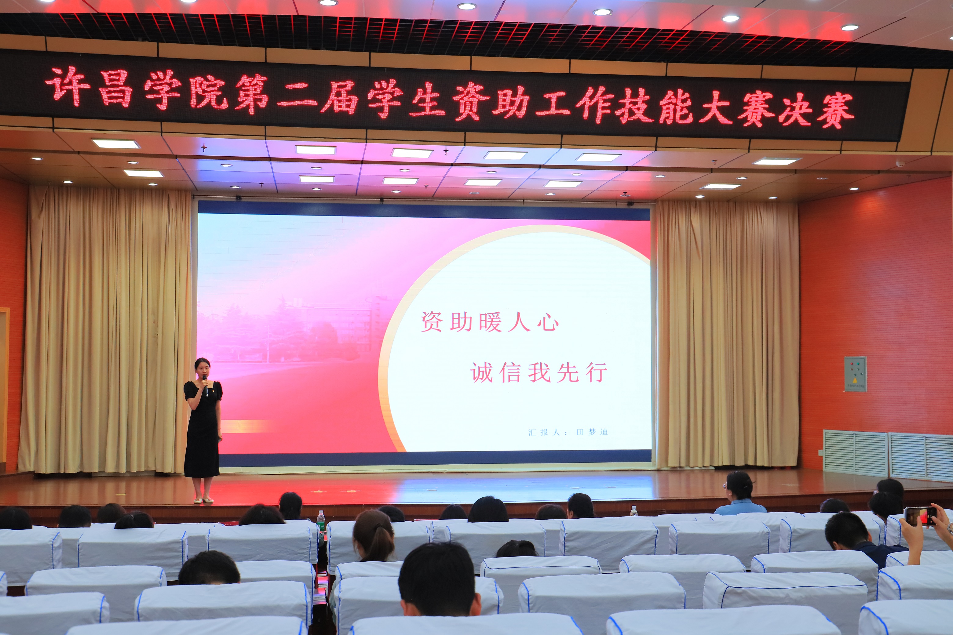 5月31日下午,我校第二届学生资助工作技能大赛决赛在学术报告厅圆满落下帷幕。学校相关部门负责人和来自许昌职业技术学院、许昌电气职业学院、许昌陶瓷职业学院等兄弟院校学生资助工作负责人担任本次大赛评委,学生处(学生资助管理中心)、财务处等部门负责人,各学院(社区)党委副书记、全体专兼职辅导员及学生代表共计300余人共同观看比赛。