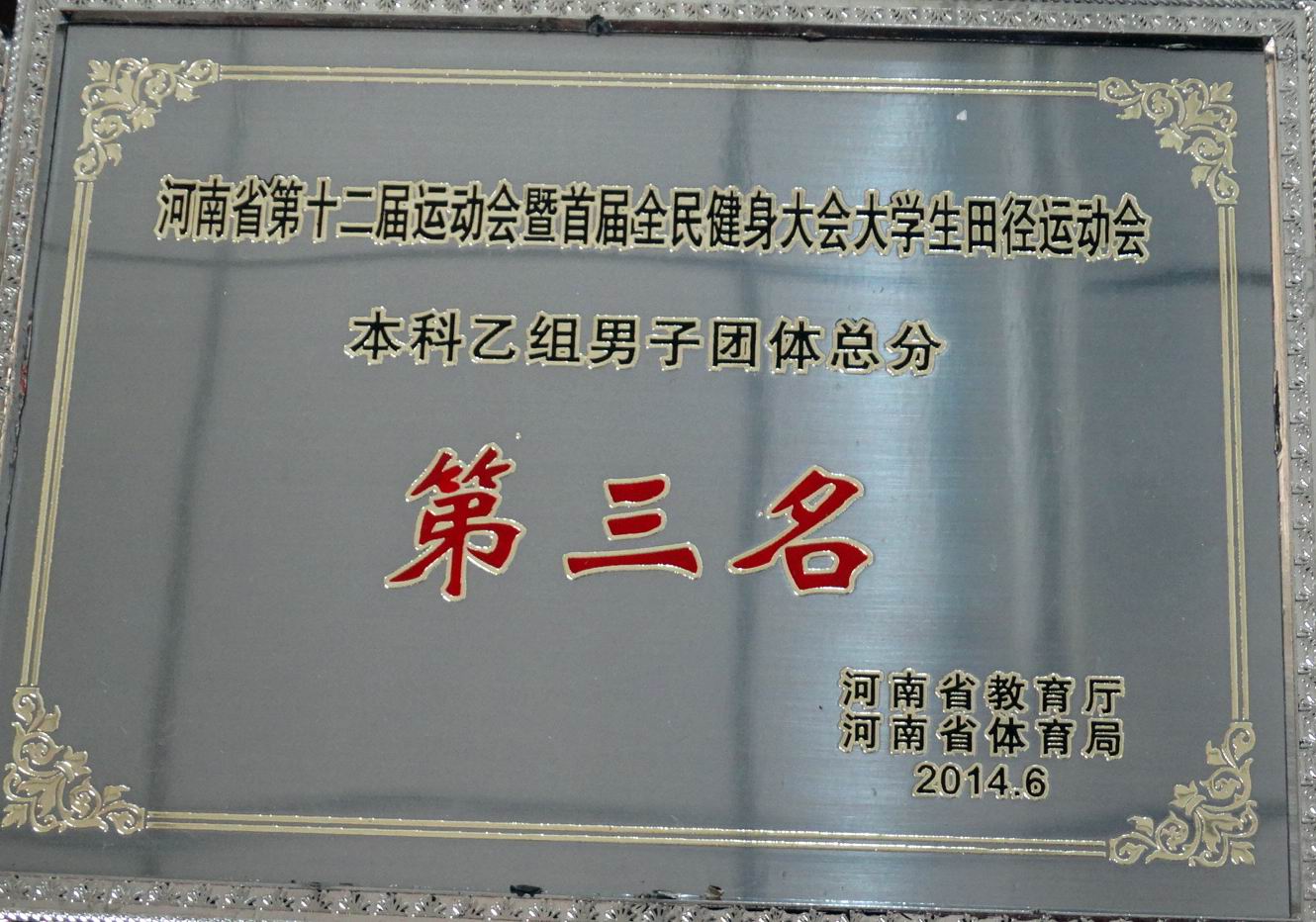 6月13日,河南省第十二届运动会暨首届全民健身大会“广义杯”大学生田径运动会在信阳职业技术学院胜利闭幕。体育学院代表我校夺得本科乙组男子团体总分第3名,并以总分91分的好成绩夺得本科乙组团体总分第6名,这是我校自2006年来第4次闯入本科乙组团体前6强,充分展示了我校体育专业良好的教学和训练水平。