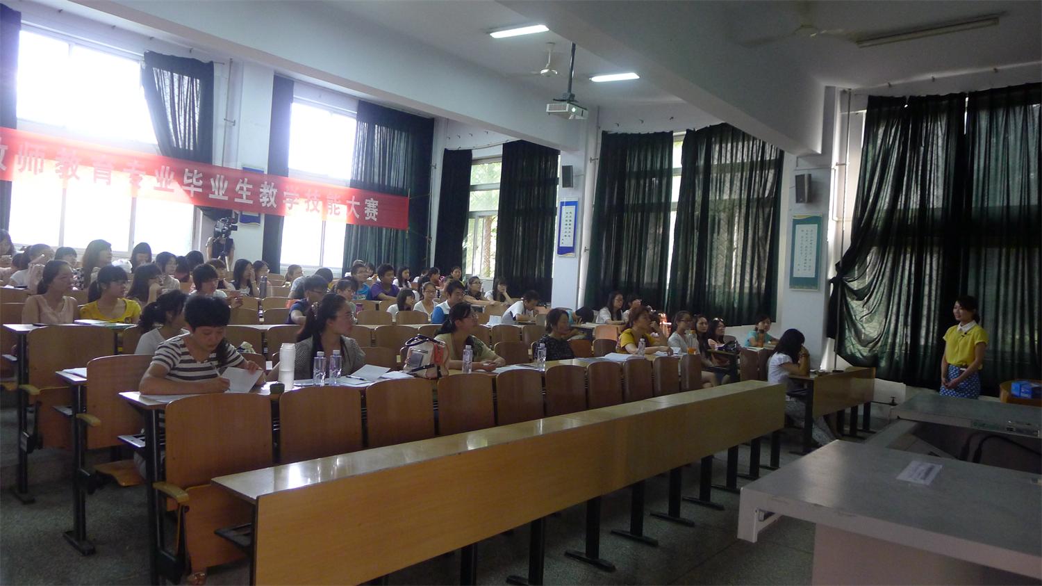 为全面提升我校教师教育专业毕业生的教师职业综合素质,增强他们对基础教育新课程改革的适应性,实现我校教师教育与基础教育的无缝对接,6月7日,我校组织举行了第十二届教师教育专业毕业生教学技能大赛。来自全校13个教师教育专业的30名2011级本科及2013级专升本学生参加了比赛。