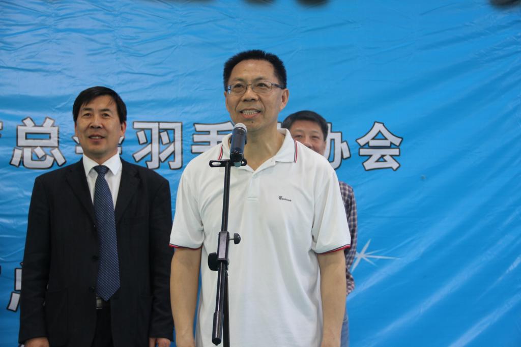 河南省教育厅副厅长贾修国宣布第四届河南省高校校长“联通杯”羽毛球比赛开赛。