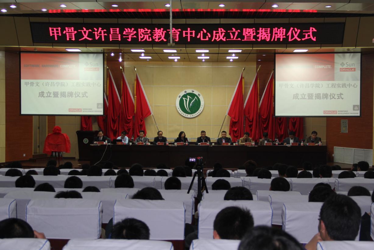 4月25日下午,Oracle(甲骨文)许昌学院工程实践教育中心成立暨揭牌仪式在学术报告厅隆重举行。副院长张建军、甲骨文全球职业培训项目中国区运营商总经理刘世波、许昌市计算机协会秘书长蒋永和、我校相关部门及院部领导师生代表300余人参加了仪式。