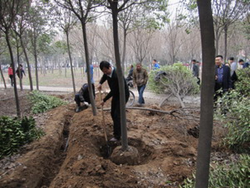 ,扶贫工作队便带领树木移植工人进行工作,从树木的测量标识、挖掘捆绑到剪枝装车,扶贫工作队成员与工人一起,历时12天,顺利完成了500余棵绿化树木的移赠工作。在树木移植过程中,后勤管理处、保卫处等相关职能部门给予了大力支持,扶贫工作队为树木移植工人提供了热情周到的后勤保障服务,帮助他们解决了住宿、吃饭和饮水等问题,得到了扶贫村村委和树木移植工人的一致好评。