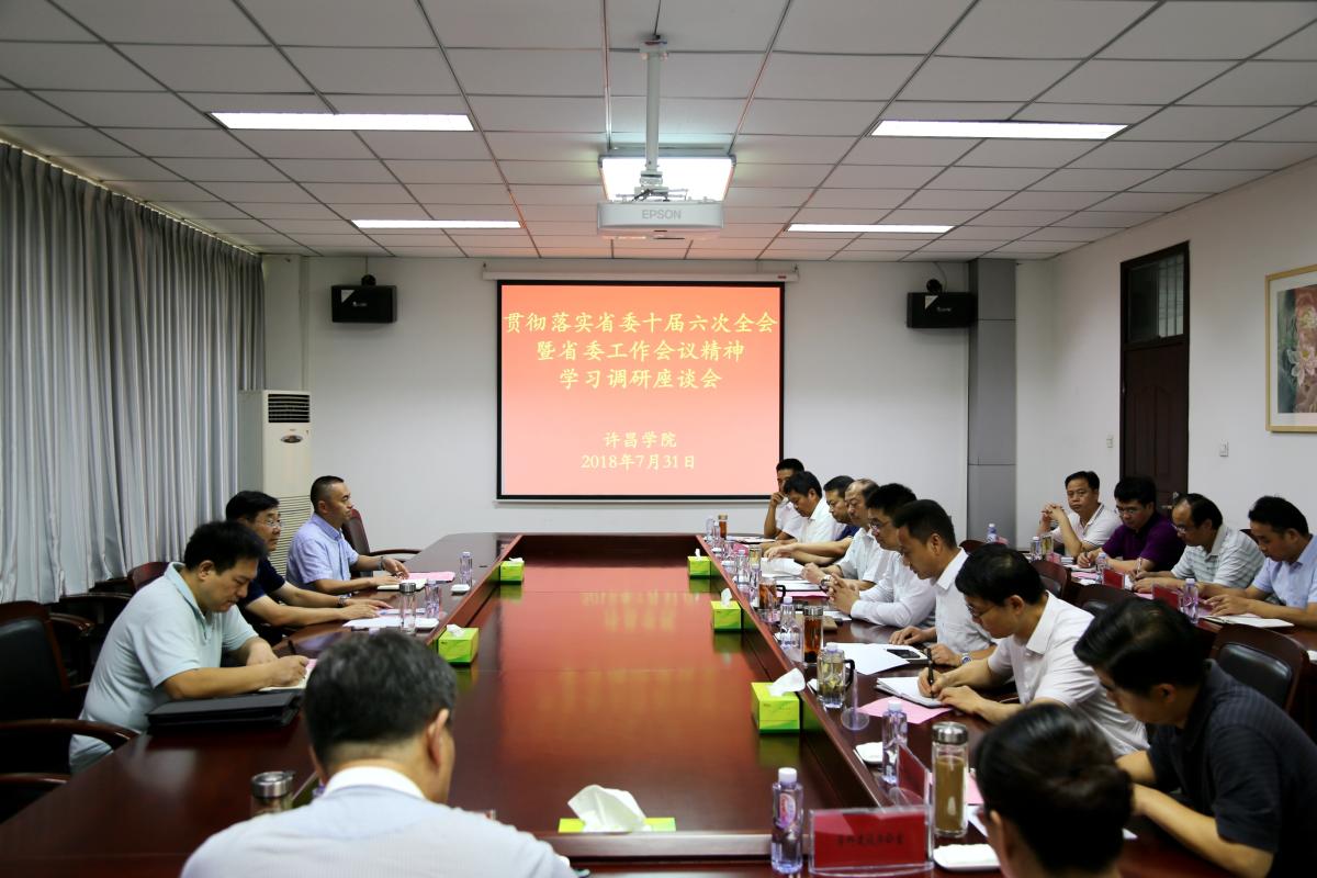 7月31日,由省高校工委特邀组织员田俊廷为副组长,省教育厅主任科员任龙云、河南财政金融学院成教院副院长李金隆为成员的省委十届六次全会暨省委工作会议精神学习调研组,莅临我校检查指导工作。