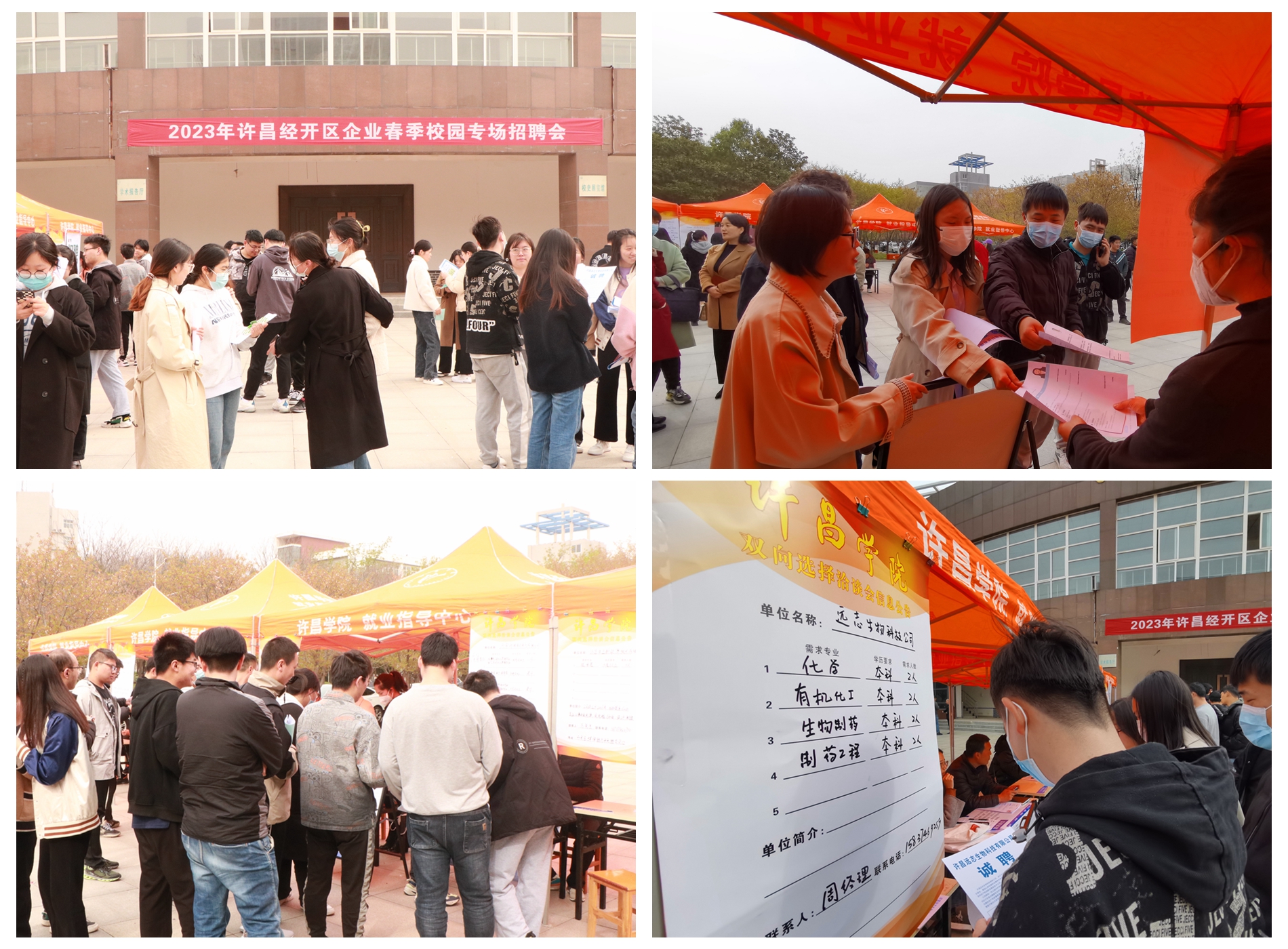 3月24日下午,由我校和许昌经济技术开发区管理委员会联合主办,电气与机械工程学院、食品与药学院承办的许昌经开区企业春季校园专场招聘会在图书馆北广场举行。许继电力电子有限公司、河南晶锐冷却技术股份有限公司、河南利锐特电气有限公司等20家知名企业及我校600余名相关专业2023届毕业生参加招聘会。