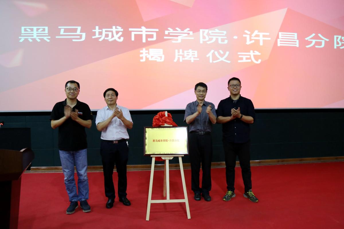 仪式最后,郑直副院长、艾祥涛副主任、崔葆华总裁、胡宇东先生共同为黑马学院许昌分院揭牌。