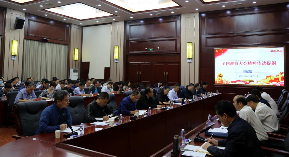 会上,闫纪建书记领学了全国教育大会的主要精神。闫书记指出,全国教育大会深入分析研究了教育工作面临的新形势新任务,对当前和今后一个时期教育改革发展及加快推进教育现代化、建设教育强国、办好人民满意的教育作出全方位部署,是我国教育史上一个新的里程碑。我们要充分认识召开全国教育大会的重大意义,准确把握全国教育大会的战略要求,以凝聚人心、完善人格、开发人力、培育人才、造福人民为工作目标,培养德智体美劳全面发展的社会主义建设者和接班人。