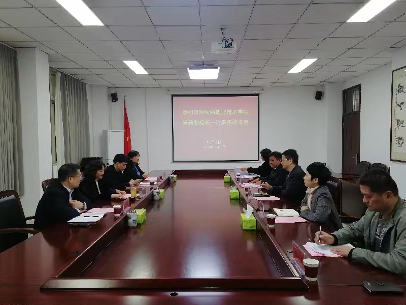 11月10日上午,河南职业技术学院校长夏新颜一行4人来我校,就加强校校合作、促进产教融合等进行考察交流。校党委副书记、工会主席梁予昉出席会议。会议由院长助理、发展规划处处长吴国玺主持。