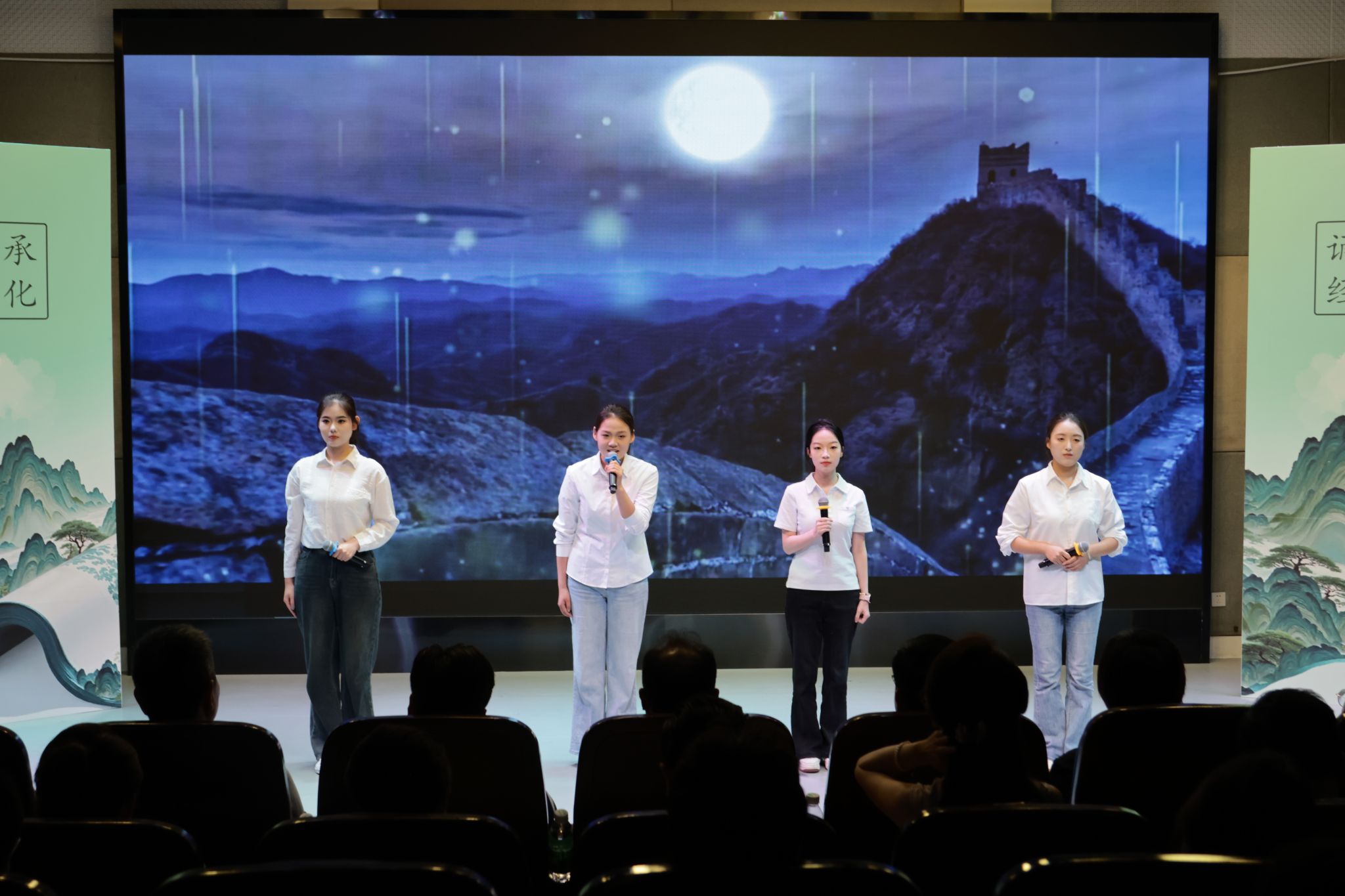 诗会共分为“诗韵端午”“山河抒怀”“诗意栖居”“青春回响”四个篇章。“诗韵端午”选取了《屈原颂》《端午咏》《城南旧事》《天上的草原》等名作,以诗为引,展现传统节日的精神内涵与文化传承;“山河抒怀”选取了《纪念碑》《月光下的中国》《驼峰之魂》等诗歌,以诗铸魂,聚焦家国情怀与民族精神,致敬山河壮阔与英雄脊梁;“诗意栖居”中《爱莲说》《开花》《遥远的向日葵地》等节目则以诗为镜,探寻心灵归宿与生命哲思;“青春回响”中《致大雁》《我们的青春》《闪耀吧 青春的火光》等诗作,以诗燃灯,展现青春的激情与担当,传递奋斗与希望的时代强音。