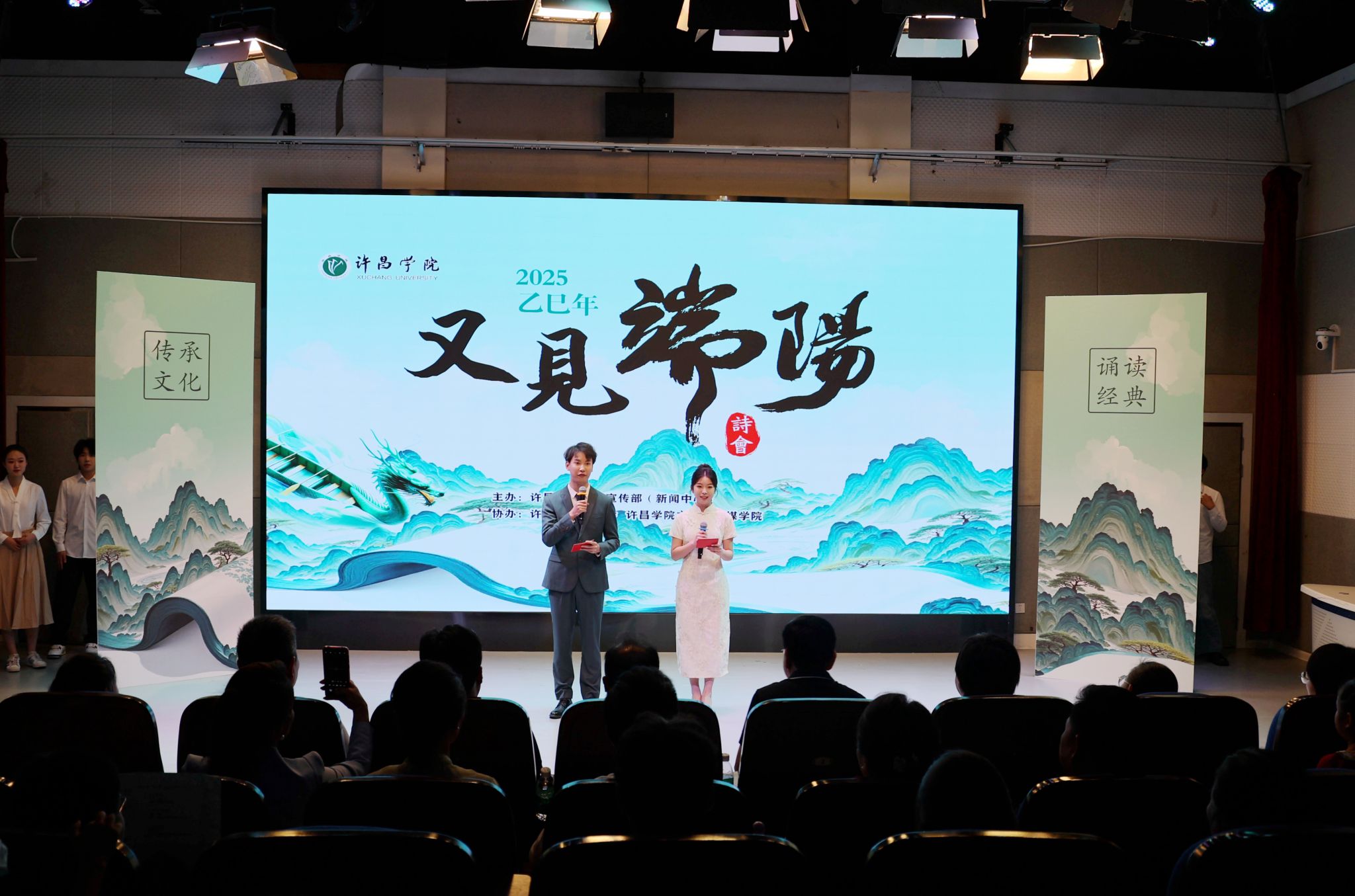 五月端阳,诗情未央。5月28日晚,我校2025年“又见端阳”诗会在蕴韬楼B3多功能演播厅如约举行。党委副书记、工会主席梁予昉出席活动。党委宣传部(新闻中心)、文史与传媒学院等部门负责人,许昌市朗诵协会相关负责人、诗歌爱好者及我校师生一同观看诗会。