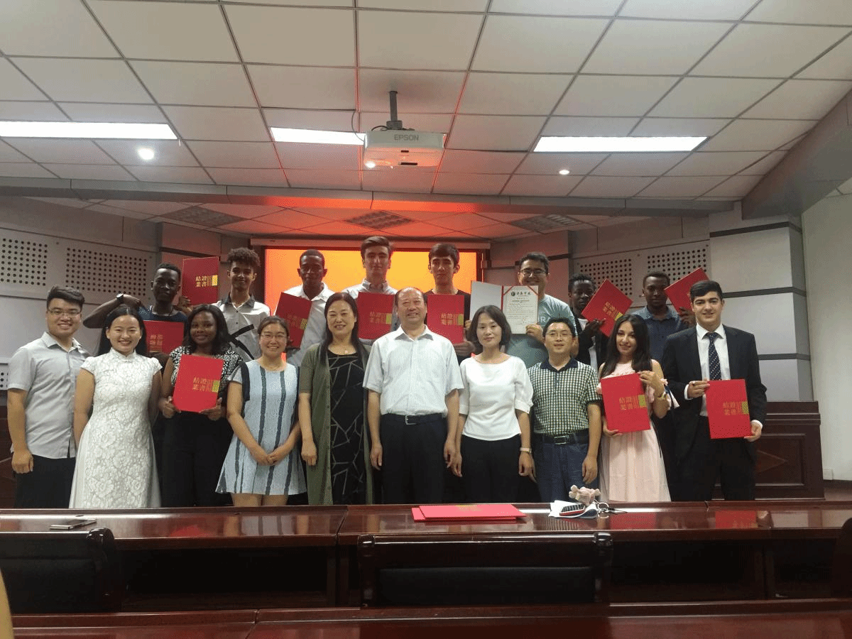 最后,出席典礼的领导为全体毕业留学生颁发结业证书,并与留学生们合影留念。(摄影:宁智沛)