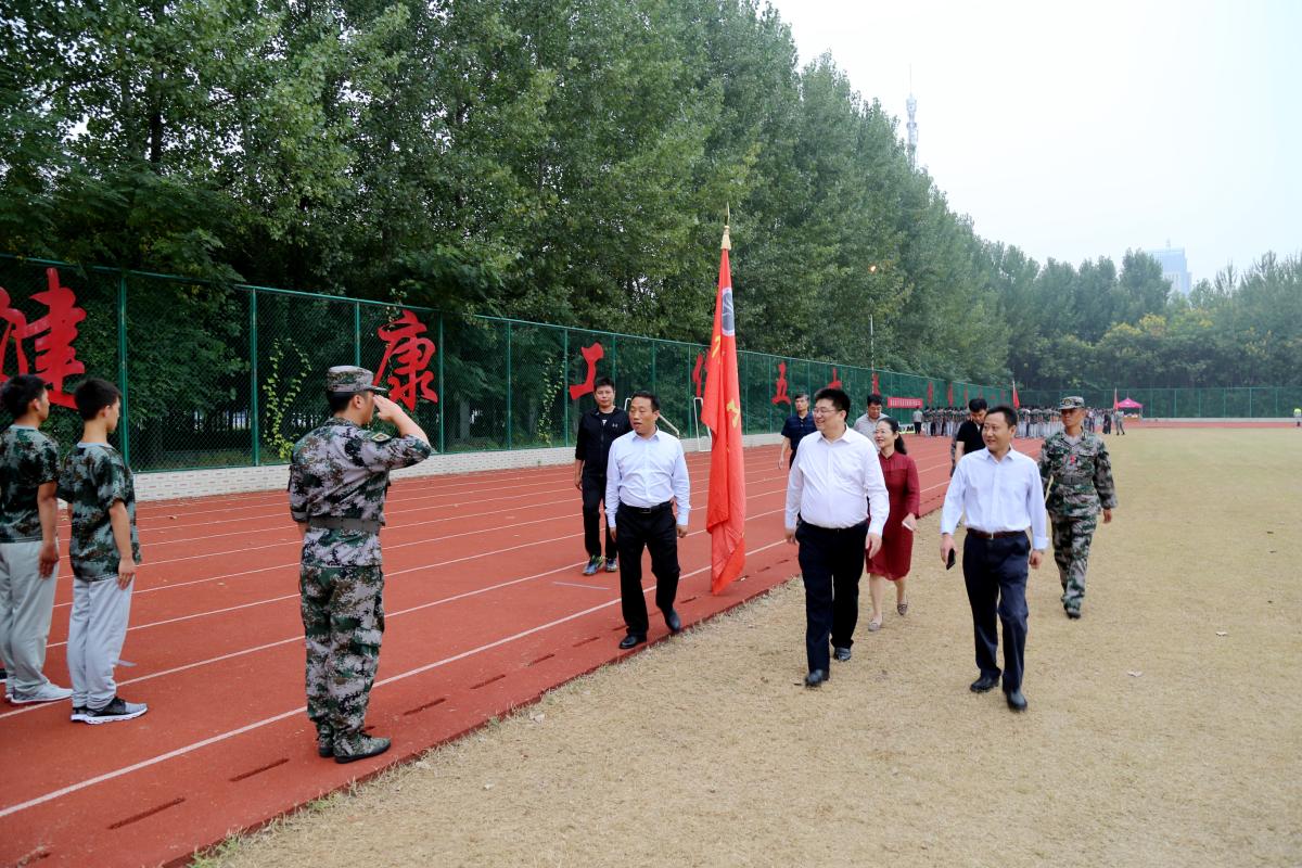 9月17日下午,党委书记闫纪建、副书记孙海在承训负责人和党政办公室、党委宣传部、团委、学生工作(人武部)、保卫处等相关部门负责人的陪同下来到新生军训现场,视察我校2018级新生军训情况。
