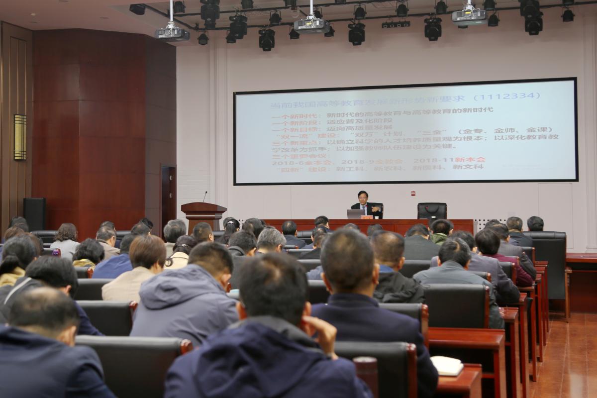 顾教授以《本科教学审核评估认识与实践层面的重要问题——基于多重视角的体悟》为题,结合自己长期从事高等教育理论研究和实践探索的经验体会,立足审核评估迎评准备,从应用型高等教育发展的新形势、新要求、应用型高等教育需要特别关注的三个问题入手,对审核评估评建工作的理念、重要问题和迎评准备做了深入的解读和指导。顾教授从本科教学工作审核评估基本特征、准备工作、现场考察、结果反馈、要求体会5个方面具体讲解审核评估迎评工作,为我校进一步扎实推进审核评估提供了有益的指导。